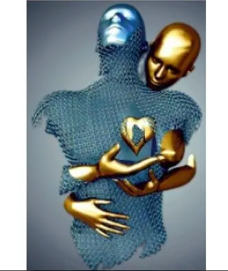 Bu özel tasarım, zıt renklerin enerjisini kullanarak mekanda derinlik algısı yaratır. Figürlerin üzerindeki metalik örgü dokusu ve kalbin merkezindeki altın detay, tablonun her açıdan farklı bir parıltı sunmasını sağlar. Modern iç mimaride “odak nokta” tasarımı arayanlar için rakipsiz bir seçenektir.
