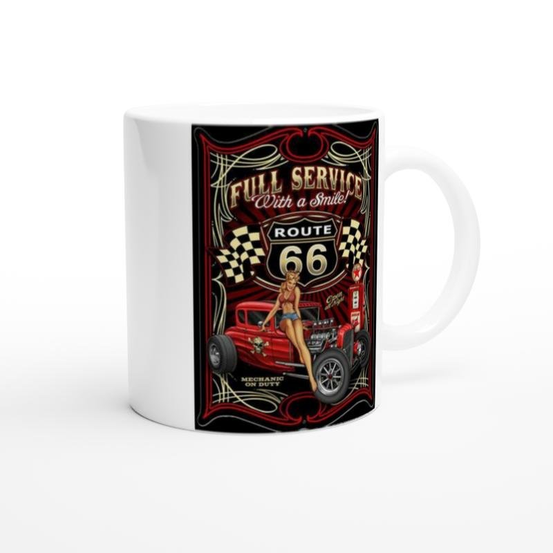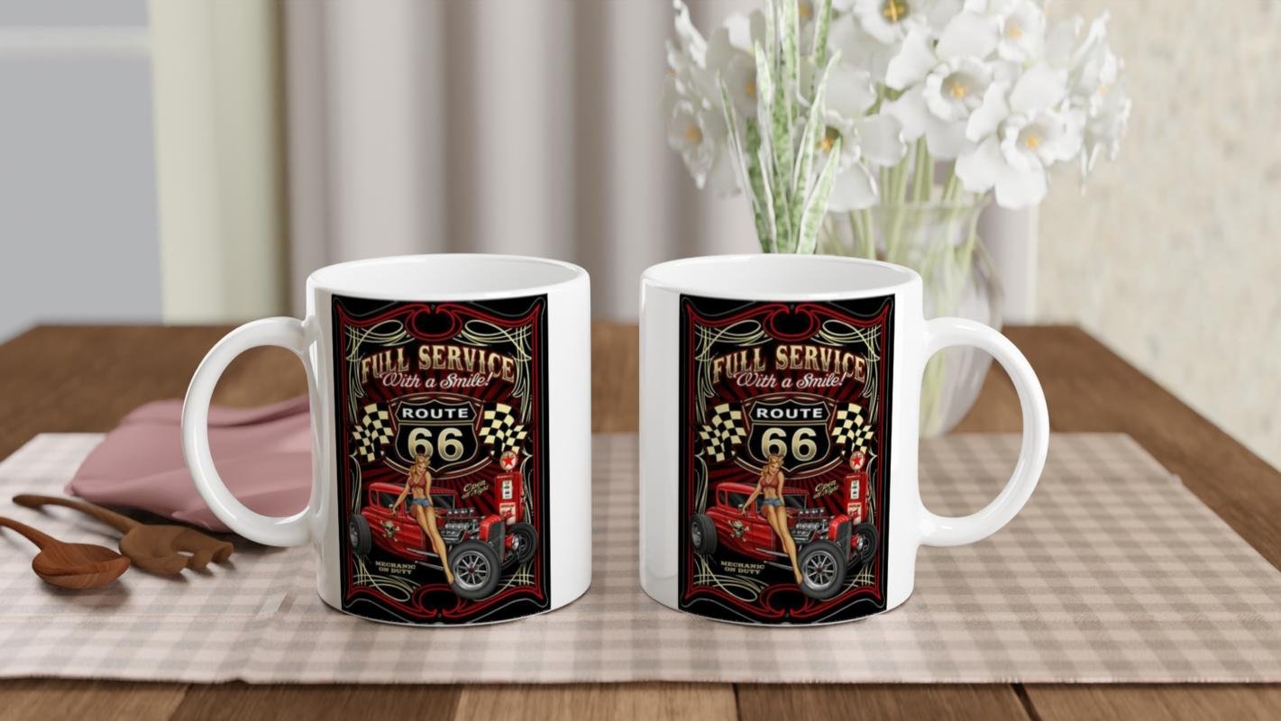 Gece boyu açık retro servis istasyonu temalı bu kupa bardak, nostalji severler için tam gaz eğlence sunuyor.