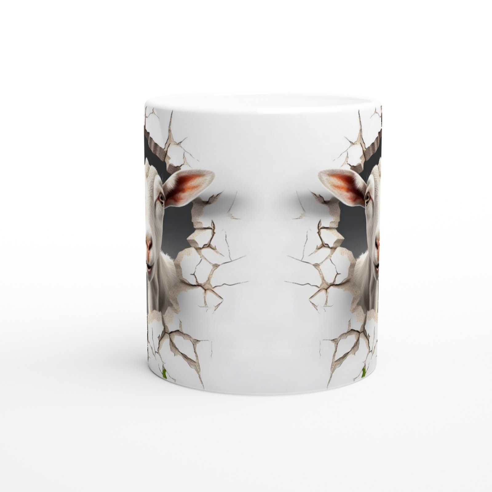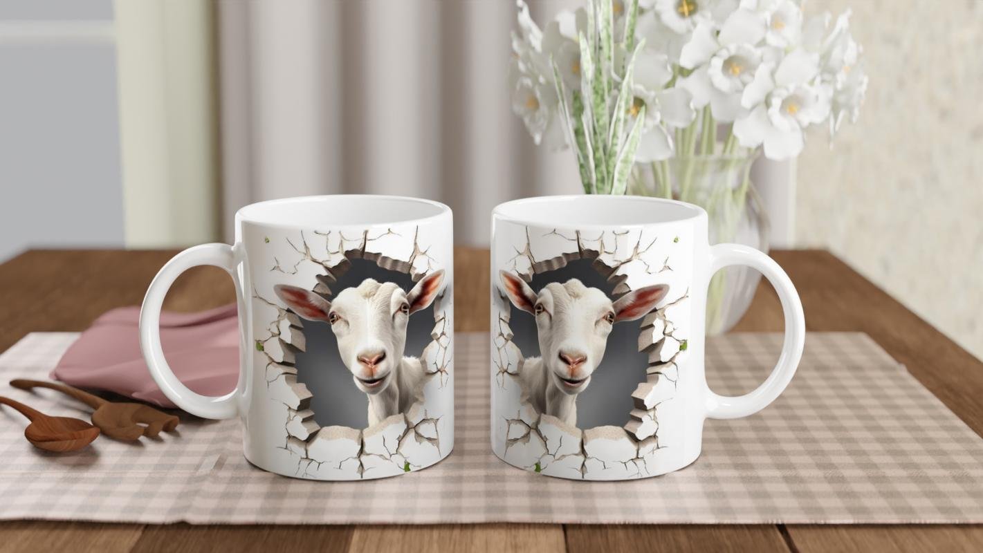 Keçi temalı baskılı kupa bardak ile sabahlarınıza eğlenceli bir başlangıç yapın. Duvarı delip bakan bu meraklı keçi gülümsetiyor!