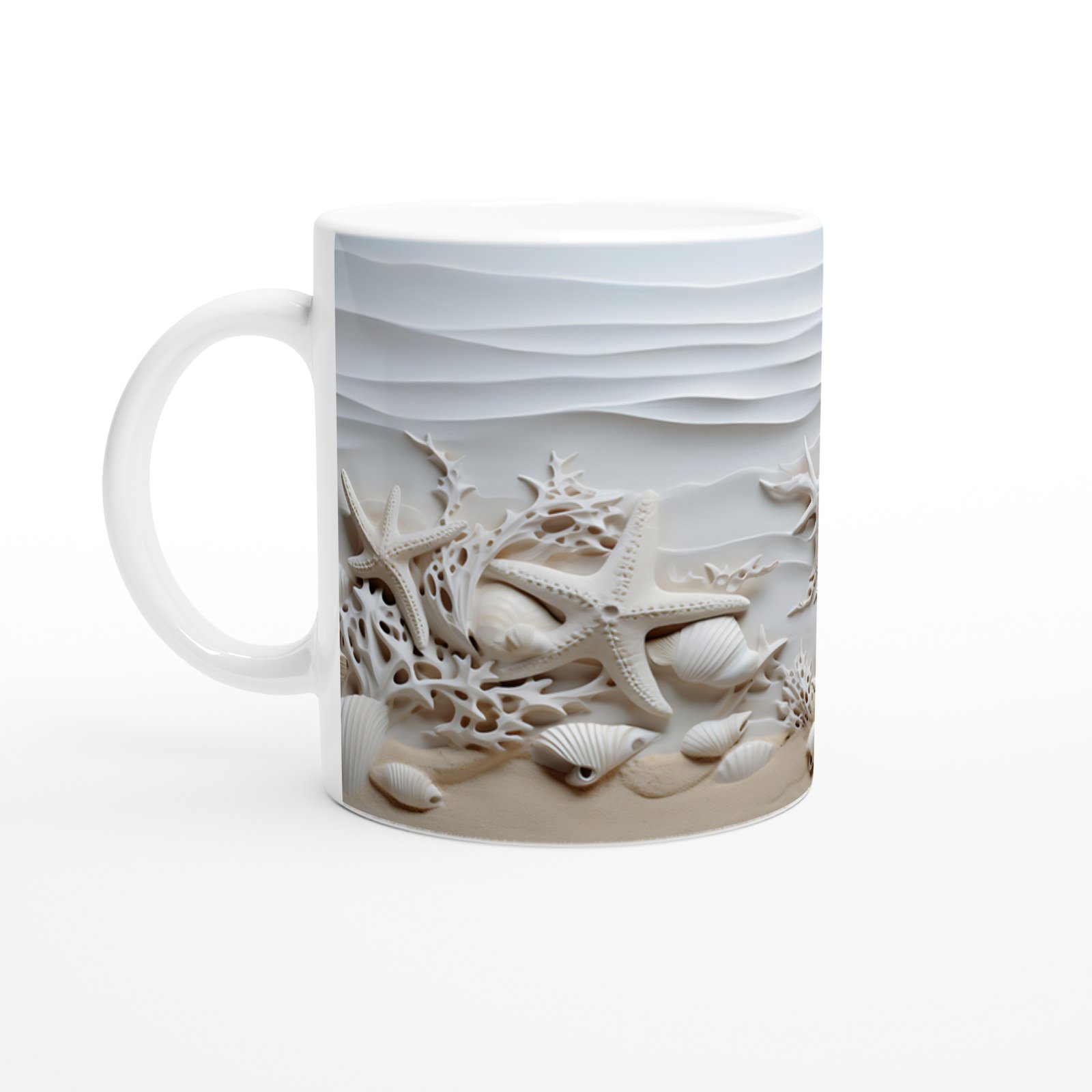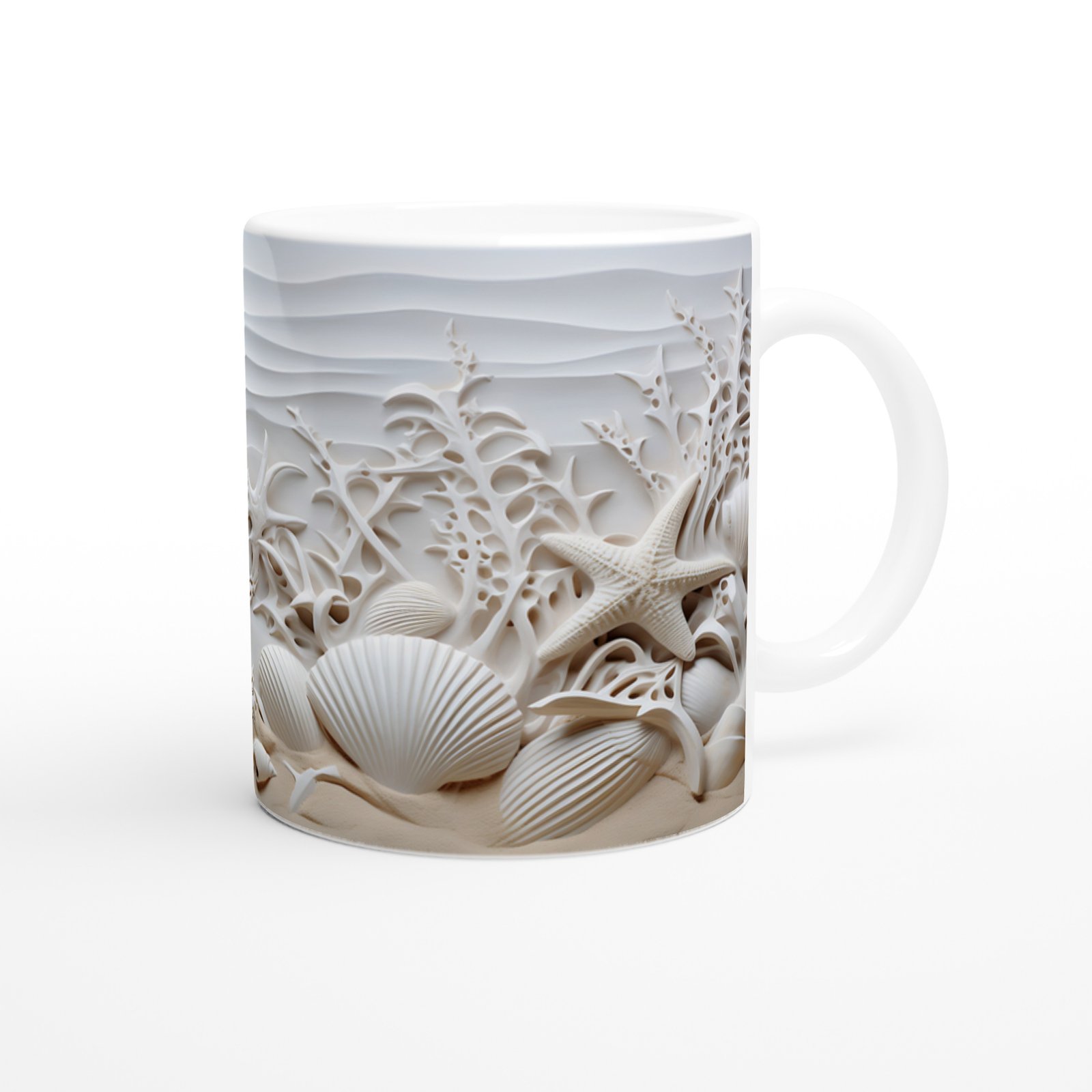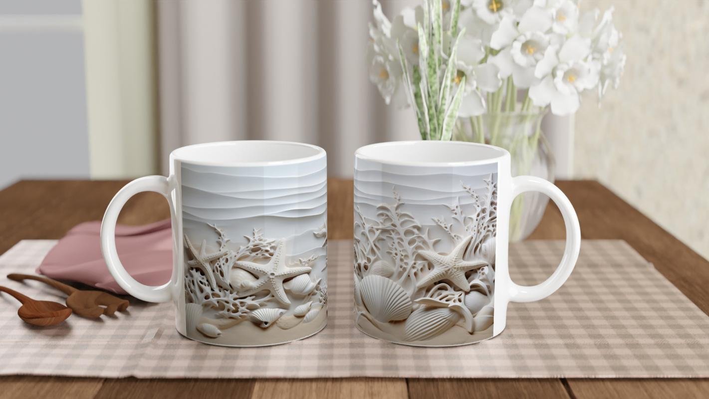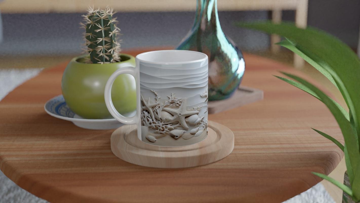 Sade tonları ve detaylı kabartma yapısıyla bu su altı temalı kupa bardak, hem dekoratif hem de huzur verici bir atmosfer yaratır.