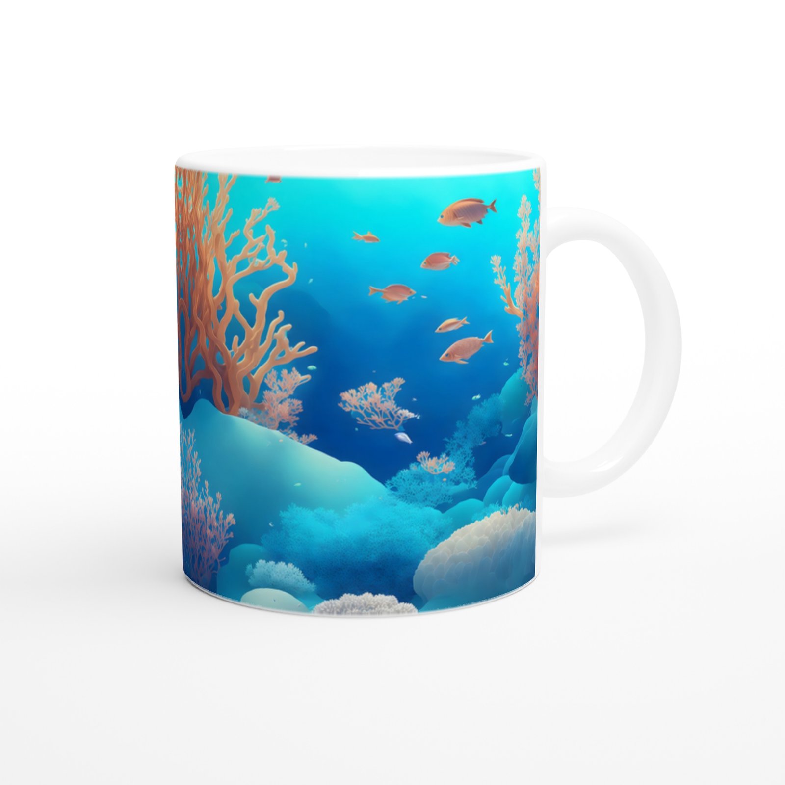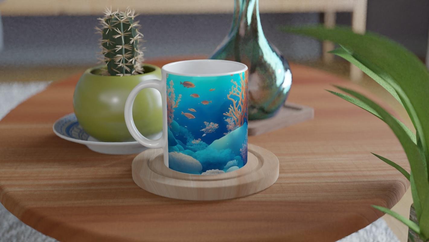 Su altı temalı kupa bardaklarımızda kullanılan süblimasyon baskı, canlı renk geçişleri ve yüksek detay seviyesiyle okyanus hissini görsel olarak yansıtır. Tüm baskılı ürünlerde olduğu gibi uzun ömürlü kullanım için elde yıkama önerilir.