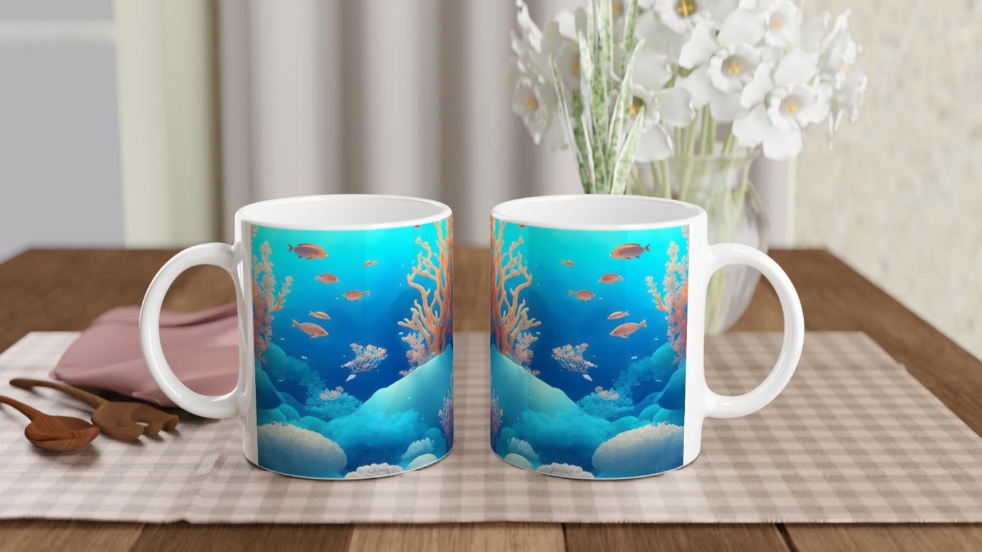 Bu deniz temalı kişiye özel kupa bardak; su altı dünyası baskılı kupa, deniz canlıları kupa bardak, okyanus temalı kahve kupası,