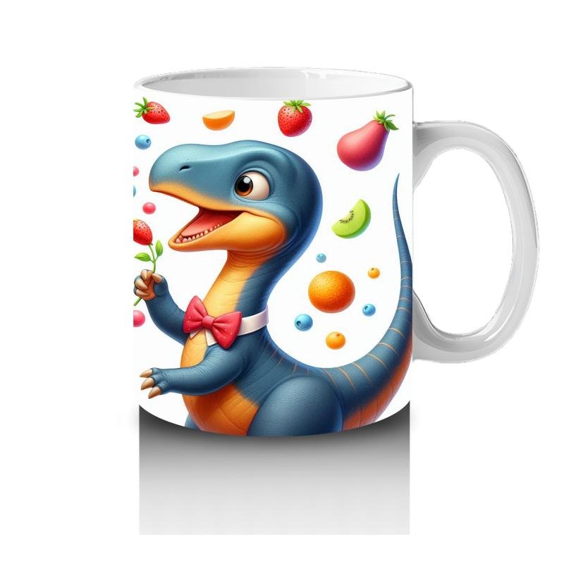 Çocuklara Sütü Sevdiren Meyve Şöleni Yapan Dinozor Desenli Kupa Bardak