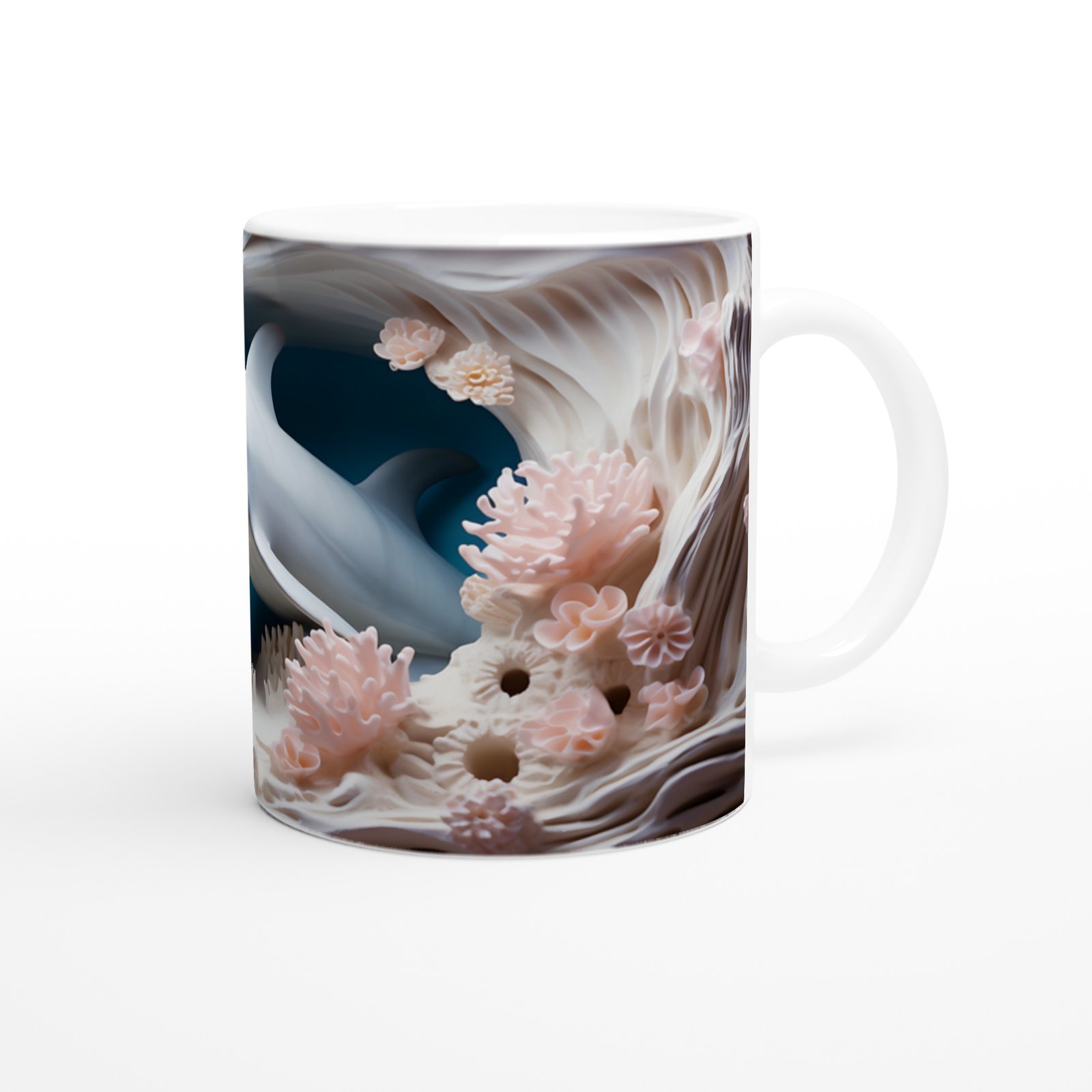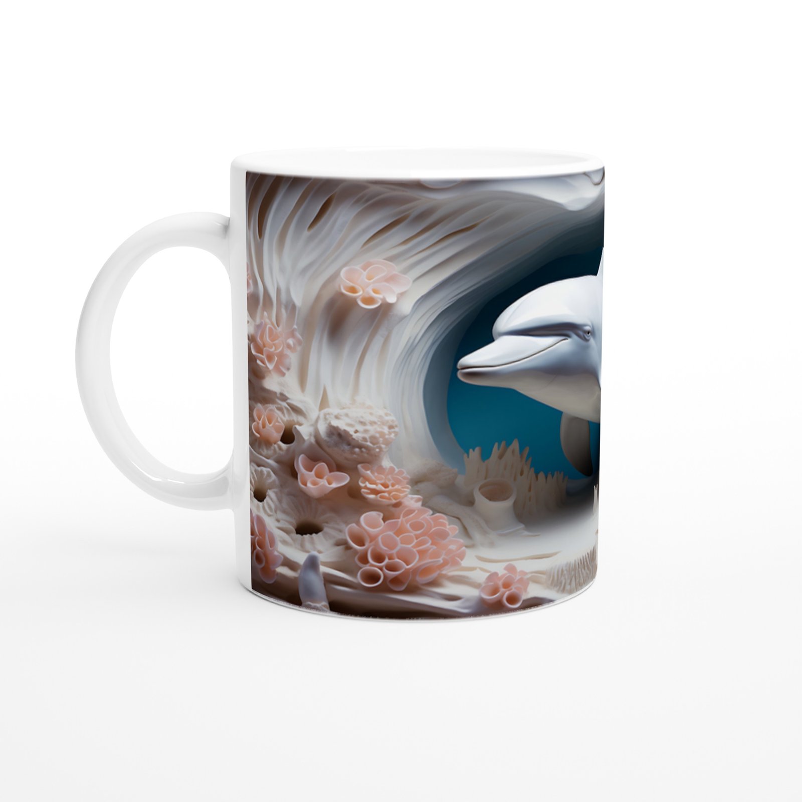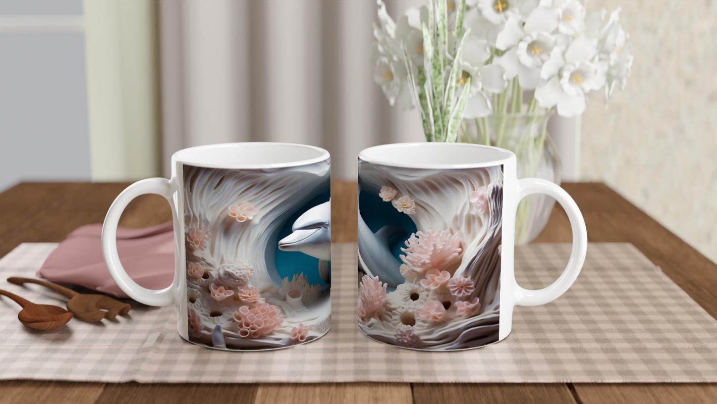 Detaylı mercan dokuları ve gülümseyen sevimli yunus figürüyle süslenen bu özel kupa bardak, her yudumda ferahlatıcı bir deniz esintisi hissettiriyor.