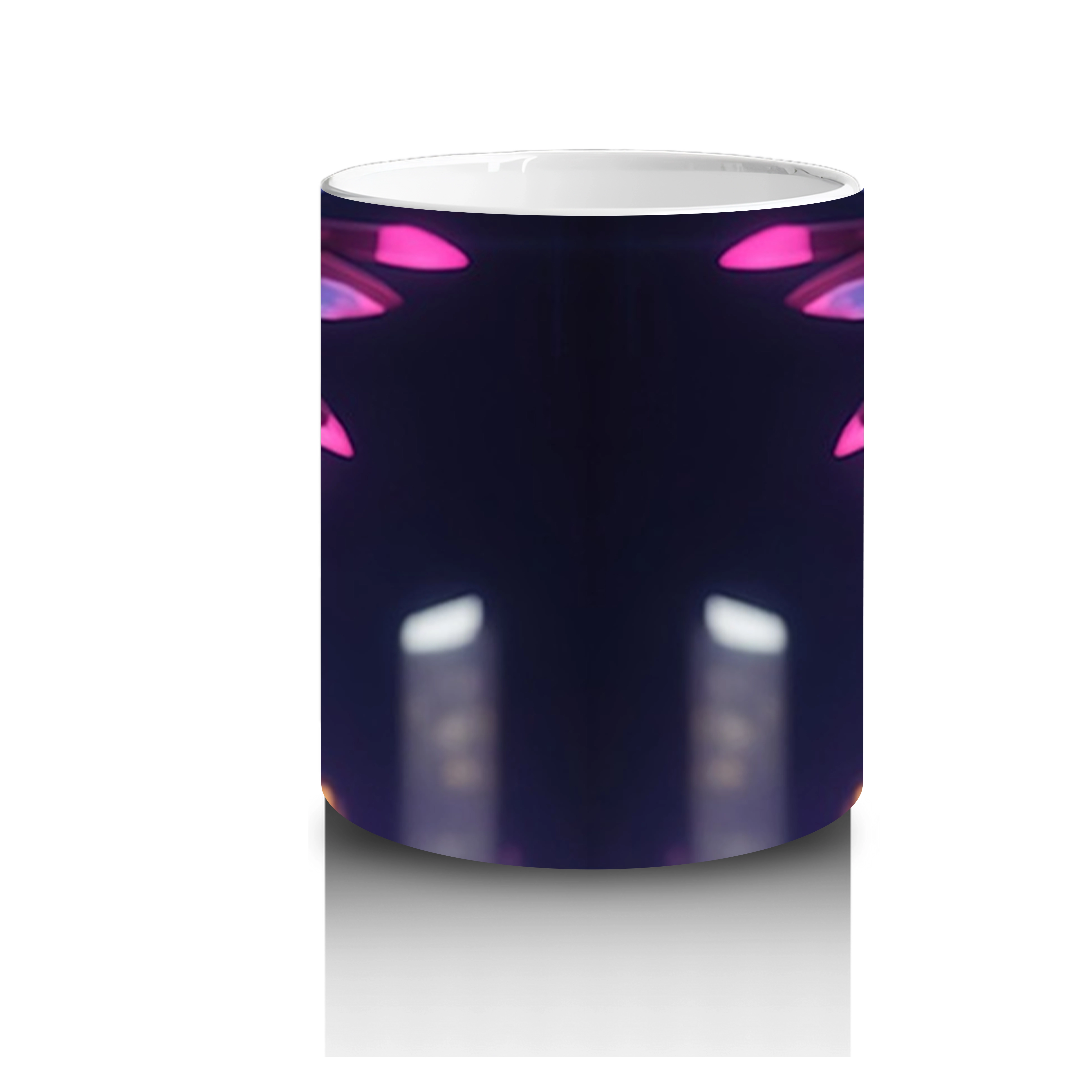 Renkli Neon Işıklarla Dans Eden Kediler – Baskılı Kahve Kupası