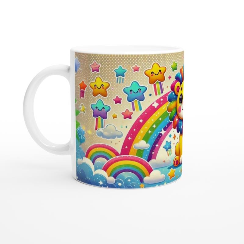 Rengarenk gökkuşağı yelesiyle neşeli aslan tasarımı çocuklara özel kupa bardağı daha da sevimli kılıyor. Miniklerin hayal dünyasına hitap eden baskılı kupa şimdi satışta!