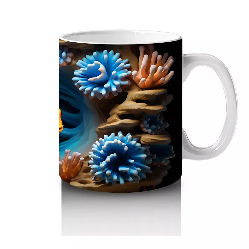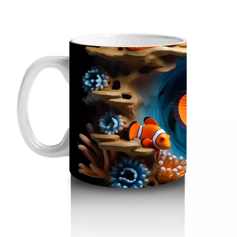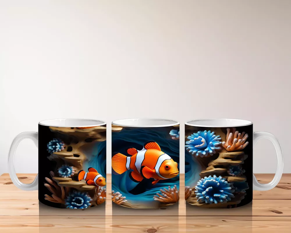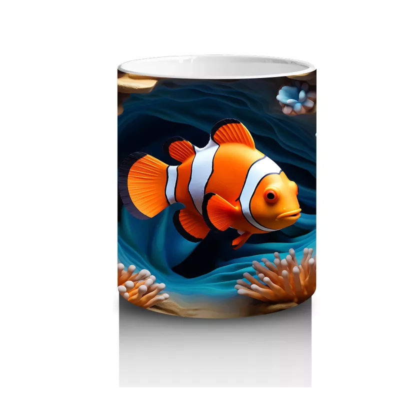 Bu eğlenceli palyaço balığı tasarımı, tropikal mercan resiflerinin neşesini masanıza taşıyor. Renkli ve pozitif enerjili bir kahve molası için harika bir tercih.