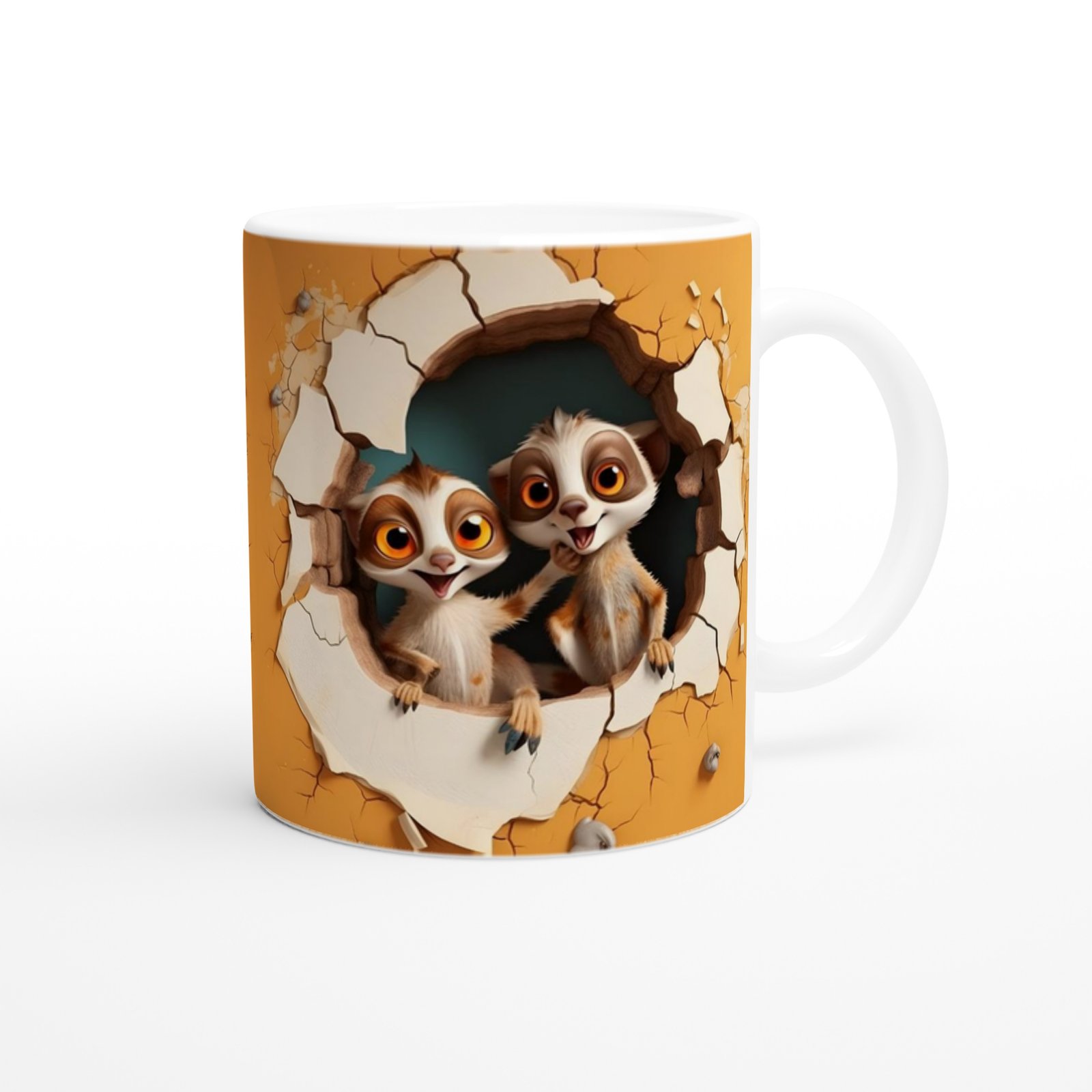 Neşeli Mirketler Baskılı Kupa Bardak, duvarı delip çıkan bu iki minik dostun sıcak bakışlarıyla gülümsetiyor. Renkli zemin ve detaylı çizimleriyle her yaş grubuna hitap eden bu kupa, pozitif enerji saçıyor. Eğlenceli bir hediye alternatifi ve günlük kullanım için şahane bir tercih!