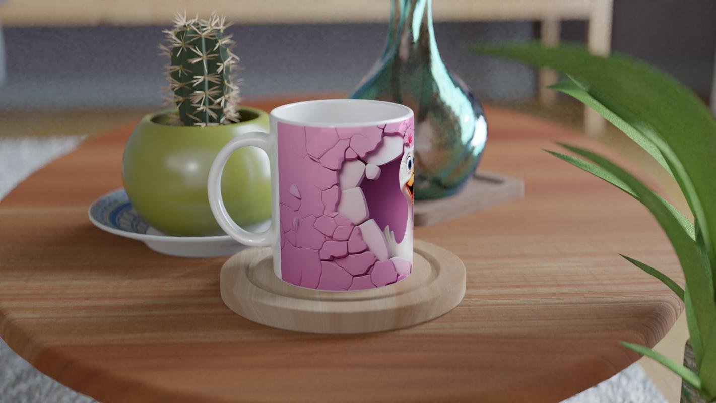 Ördek baskılı kupa, enerjik gülümsemesi ve sevimli bakışlarıyla neşeli bir atmosfer yaratır.