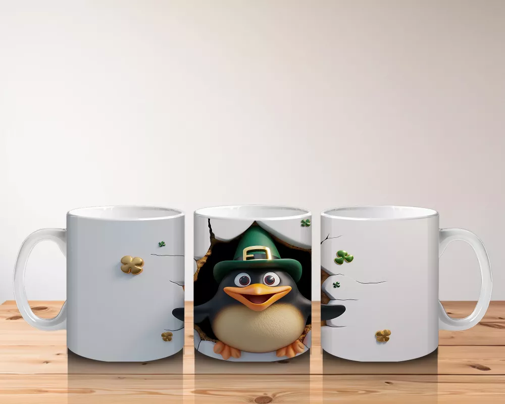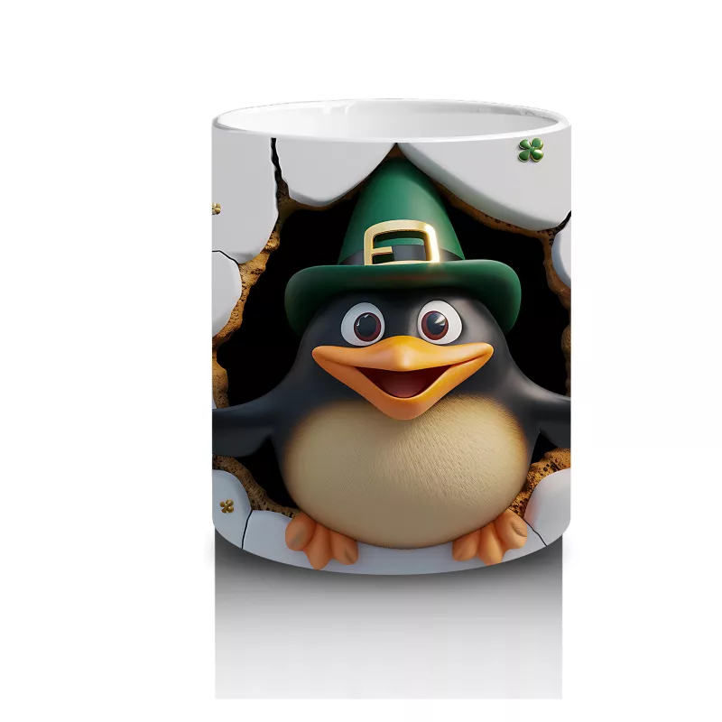 Leprechaun Şapkası Takan Neşeli Penguen Karakteri – Baskılı Kahve Kupası