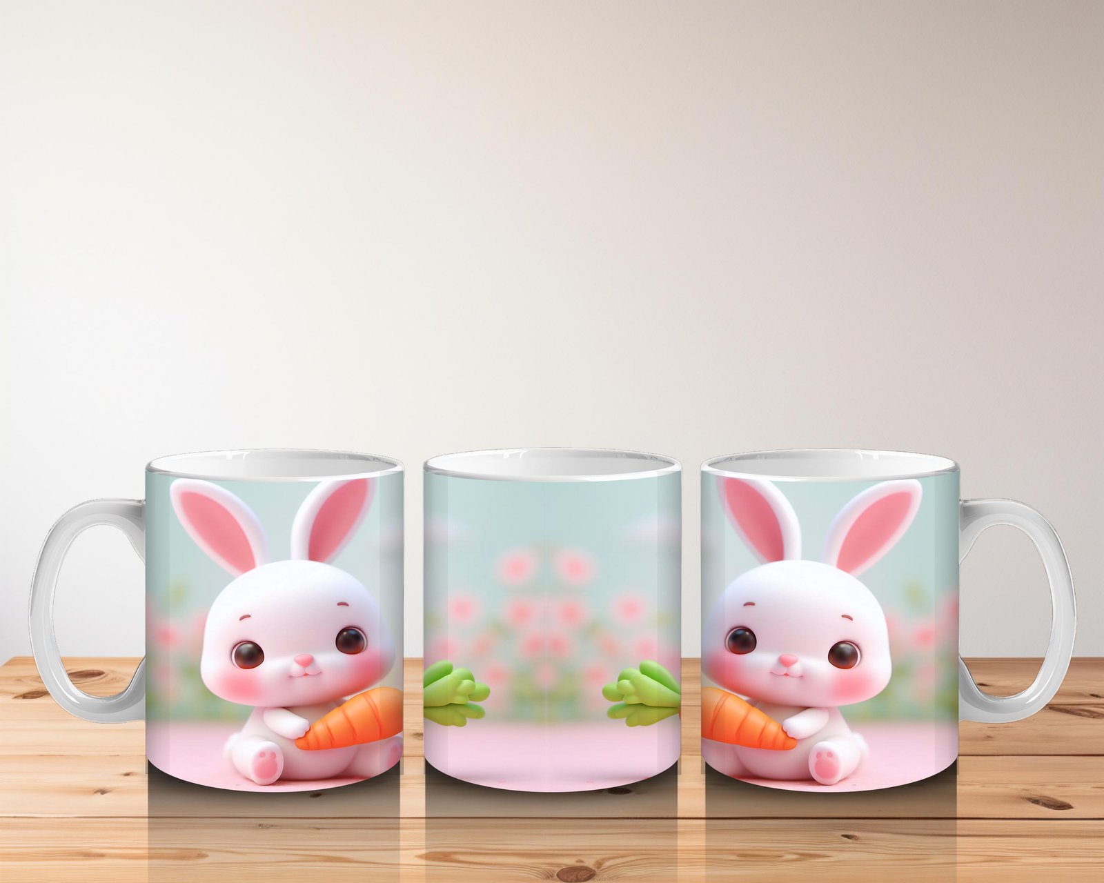 Çocuklara Sütü Sevdiren Havuçlu Neşeli Tavşan Kupa Bardak