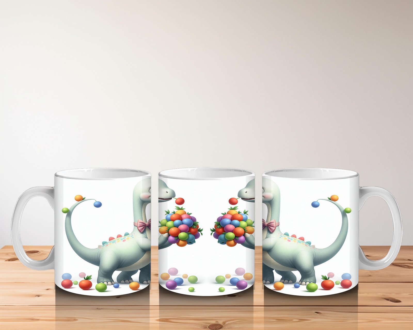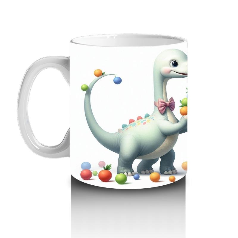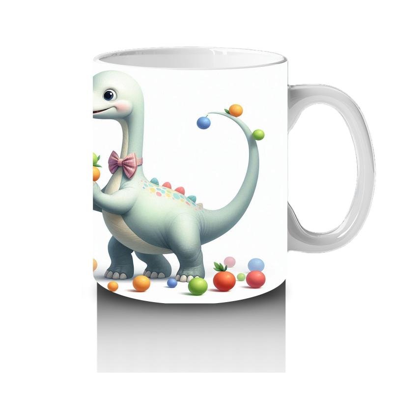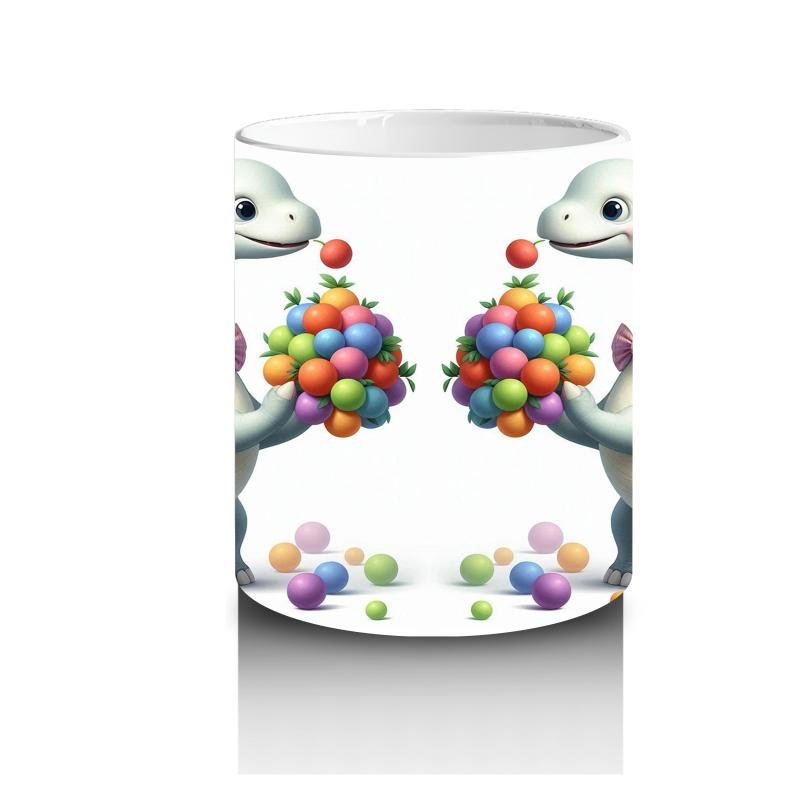 Çocuklara Sütü Sevdiren Renkli Toplarla Oynayan Sevimli Dinozor Desenli Kupa Bardak