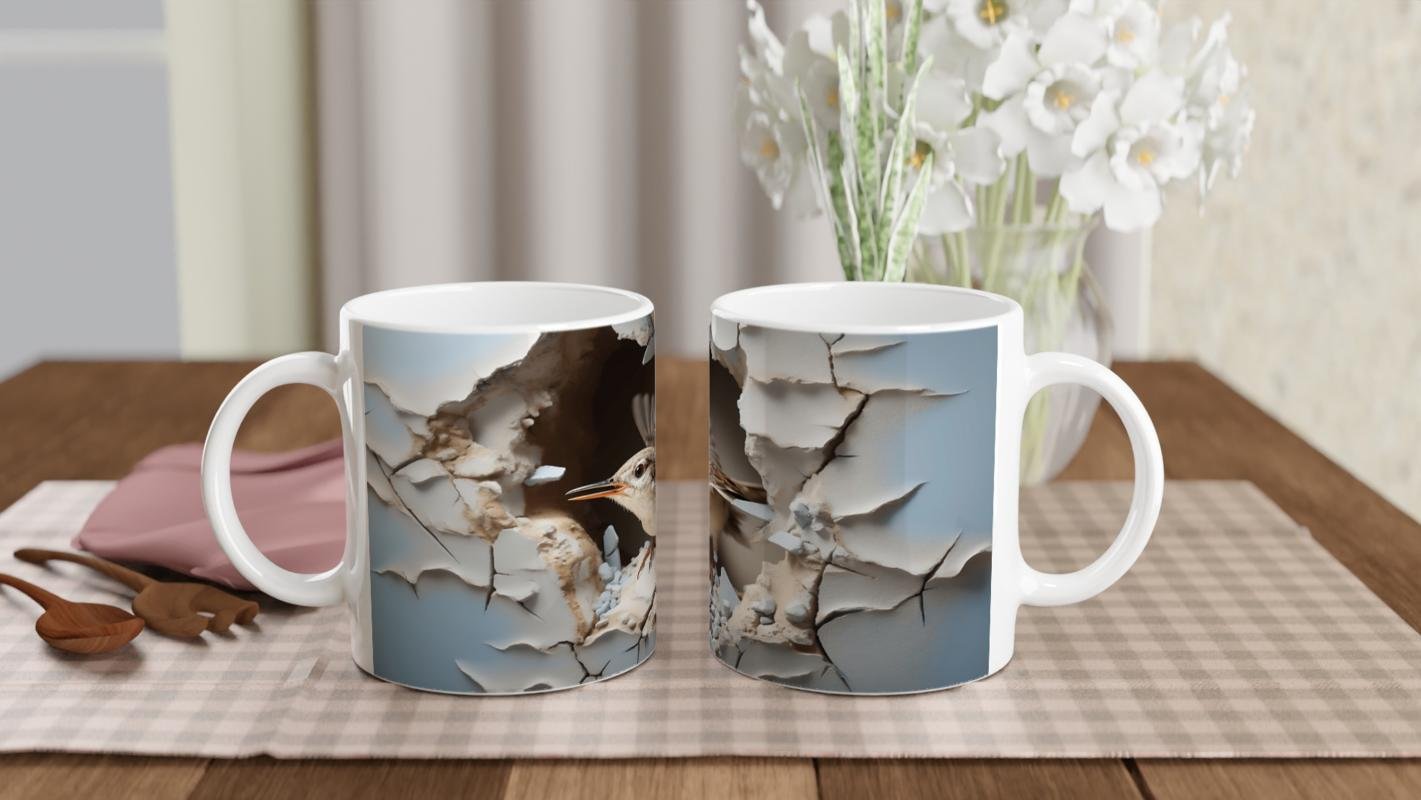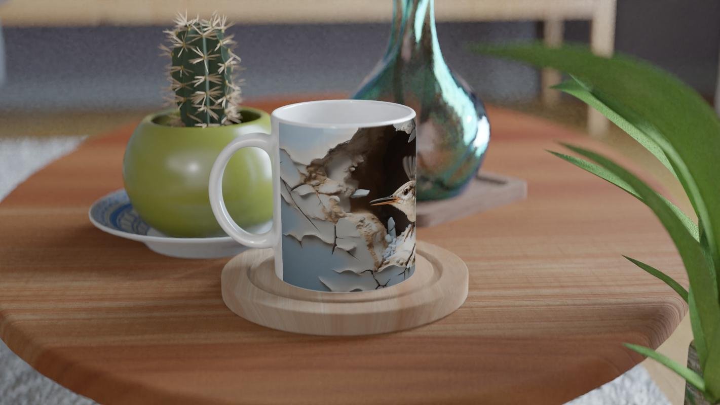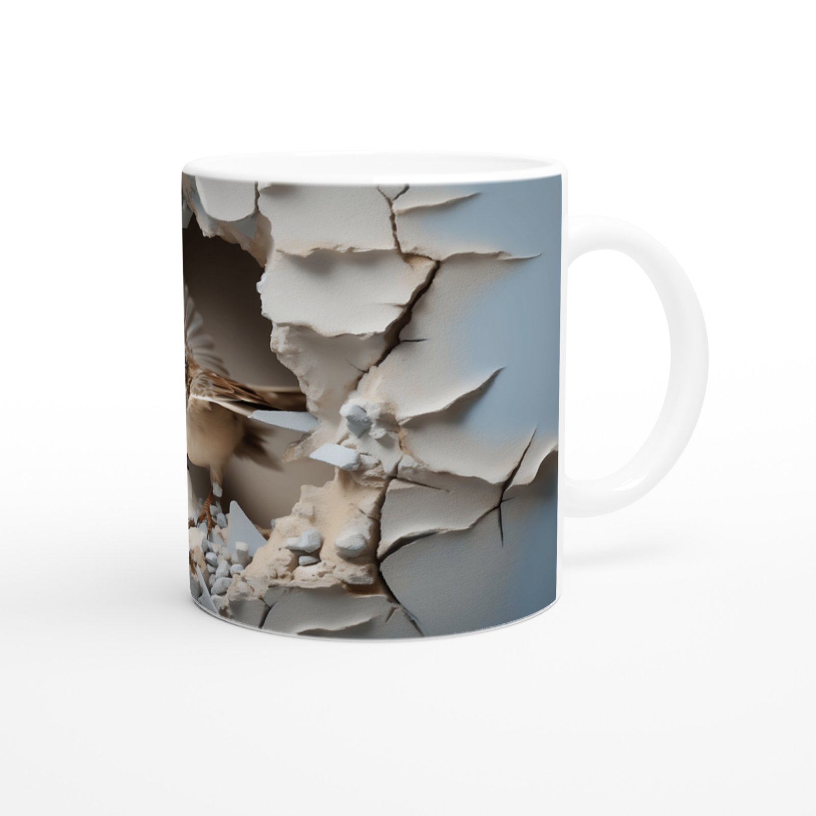 Duvarı Delip Özgürlüğe Kanat Açan Kuş Temalı Baskılı Kupa Bardak