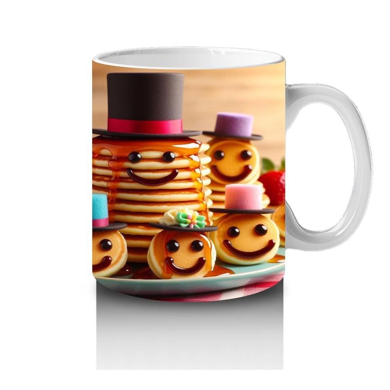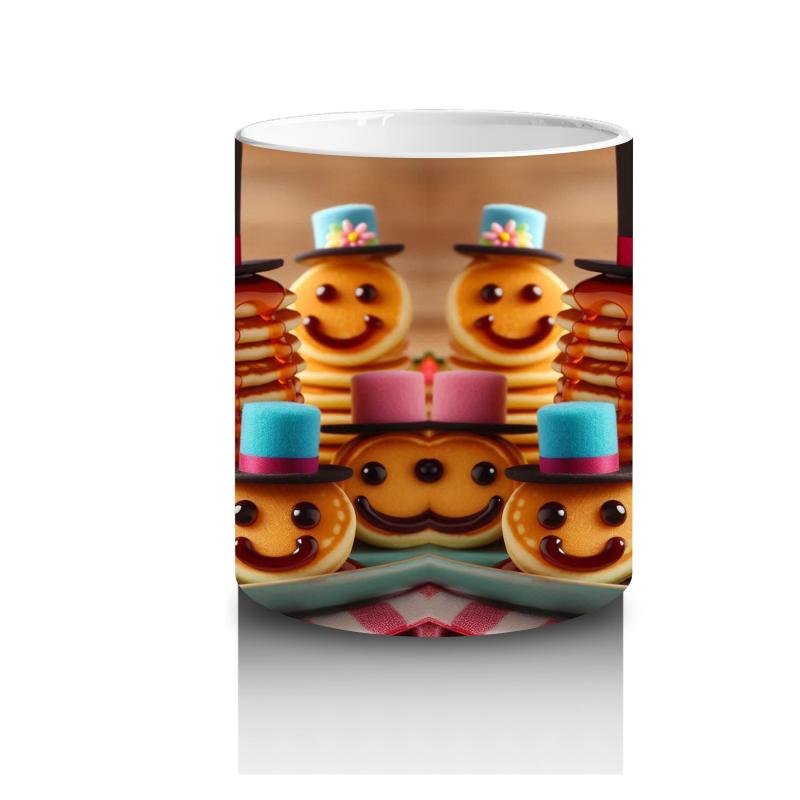 Tatlı pankeklerin dans ettiği neşeli bir karnaval! Bu eğlenceli tasarım, süt molalarını çocuklar için lezzetli ve renkli bir kutlamaya dönüştürüyor.