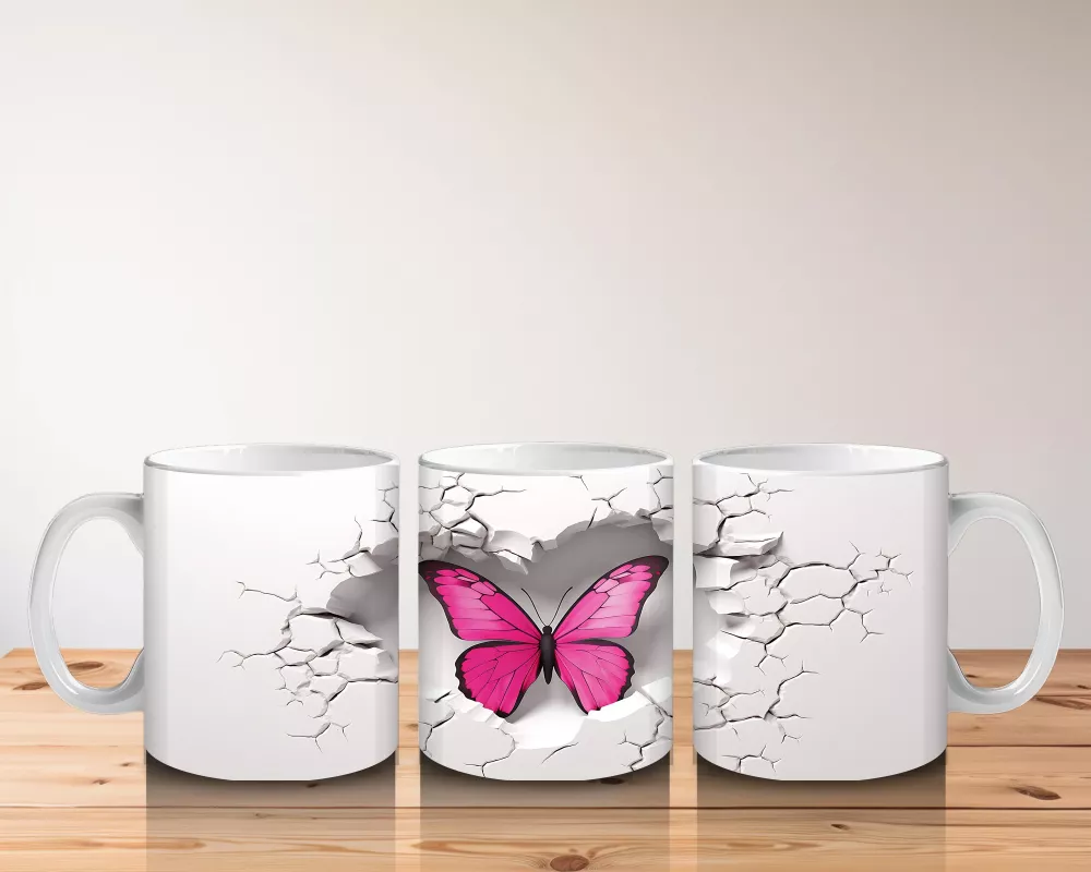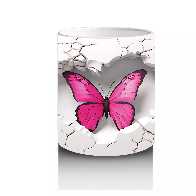 Çatlak Duvarda Parlayan Pembe Kelebek – Baskılı Kahve Kupası