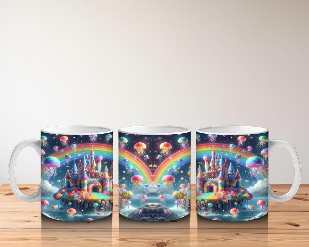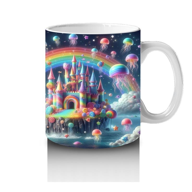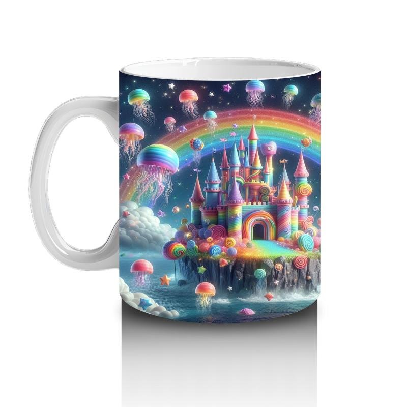 Gökkuşağı ışıklarıyla parlayan bu masal şatosu, her süt yudumunu sihirli bir hikâyeye dönüştürüyor. Minikler için rüya gibi bir tasarım!