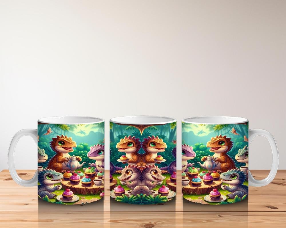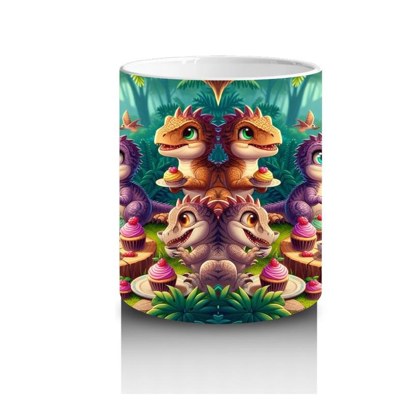 Çocuklara Sütü Sevdiren Pasta Partisi Yapan Dinozorlar Desenli Kupa Bardak