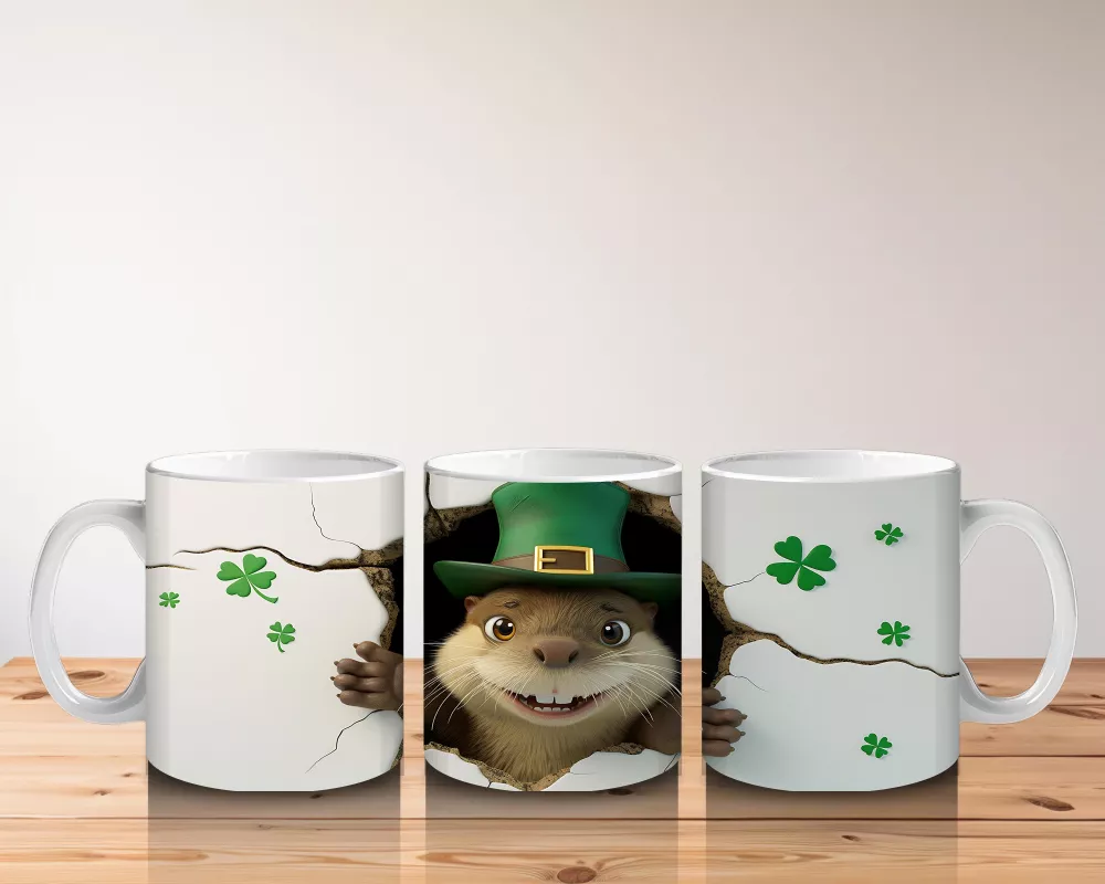 Yonca Desenli Şapkalı Fare – Baskılı Kahve Kupası