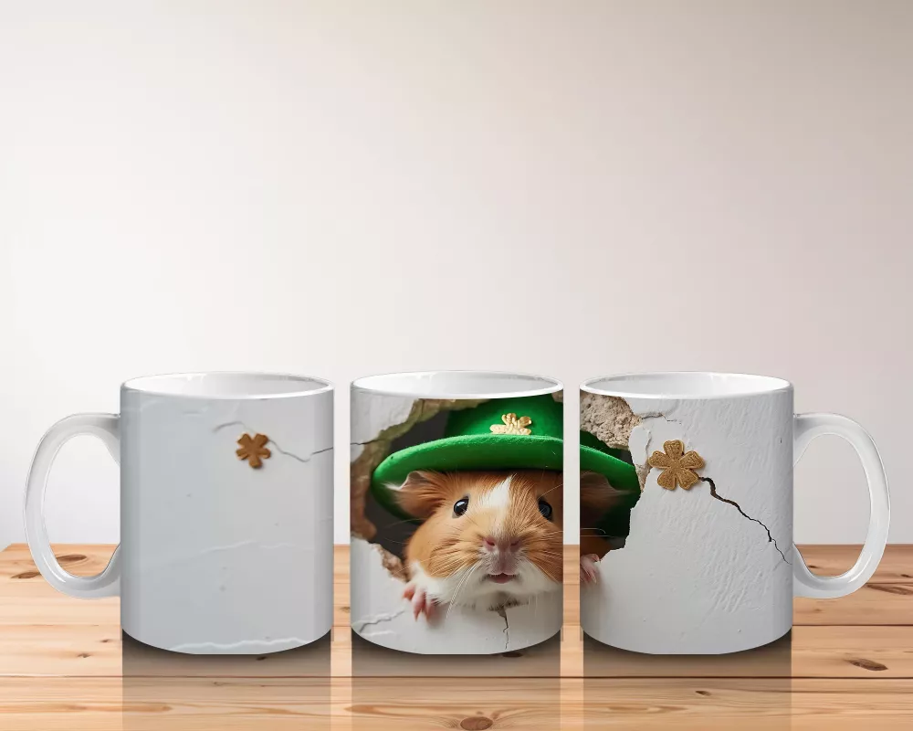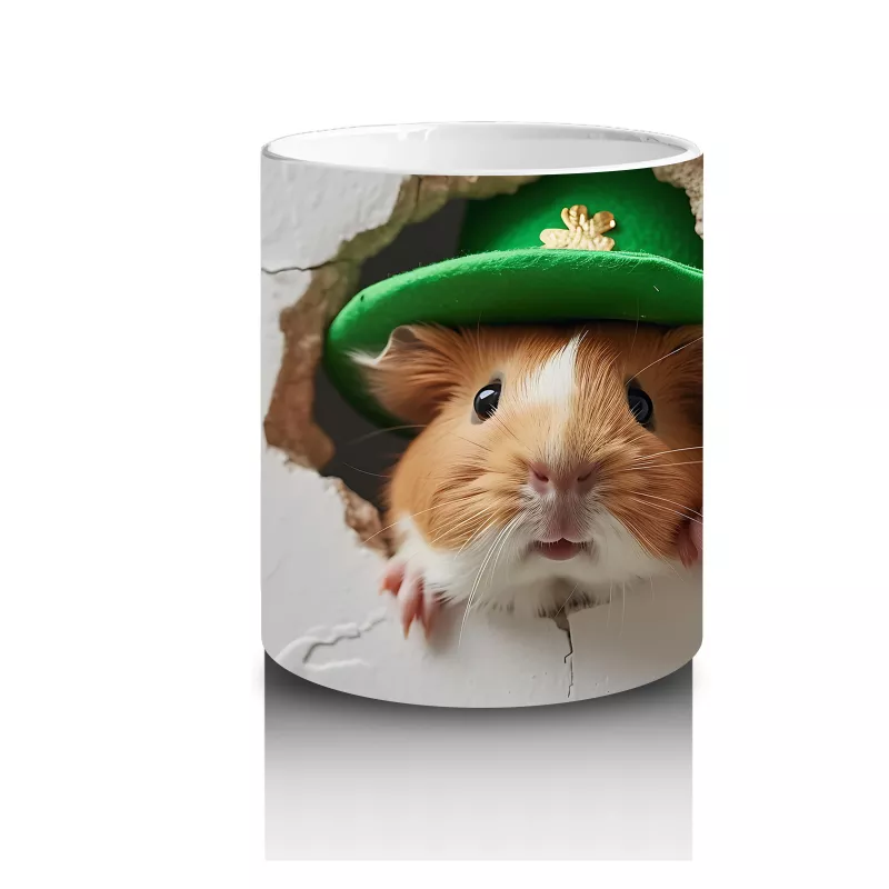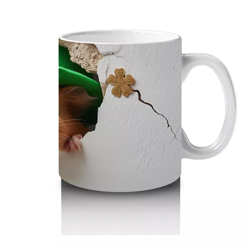 Çatlak Duvarda St. Patrick Şapkalı Sevimli Sincap – Baskılı Kahve Kupası