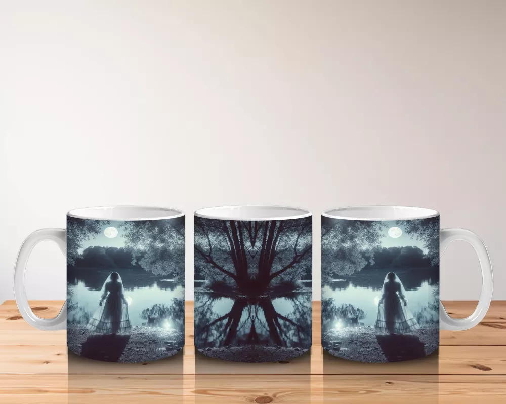 Sisli mezarlıkta kara pelerinli silüet figürüyle tasarlanan bu gotik kupa bardak, Cadılar Bayramı’na karanlık ve gizemli bir hava ekler.