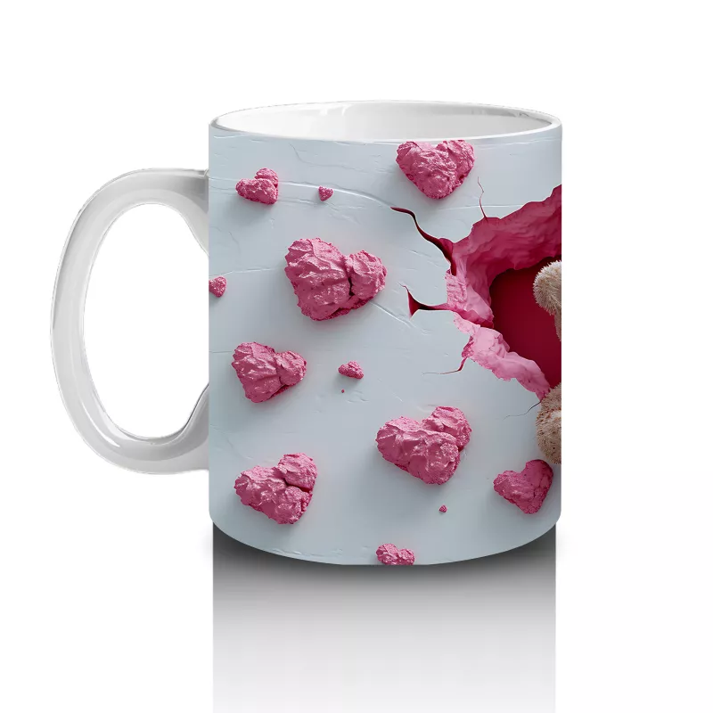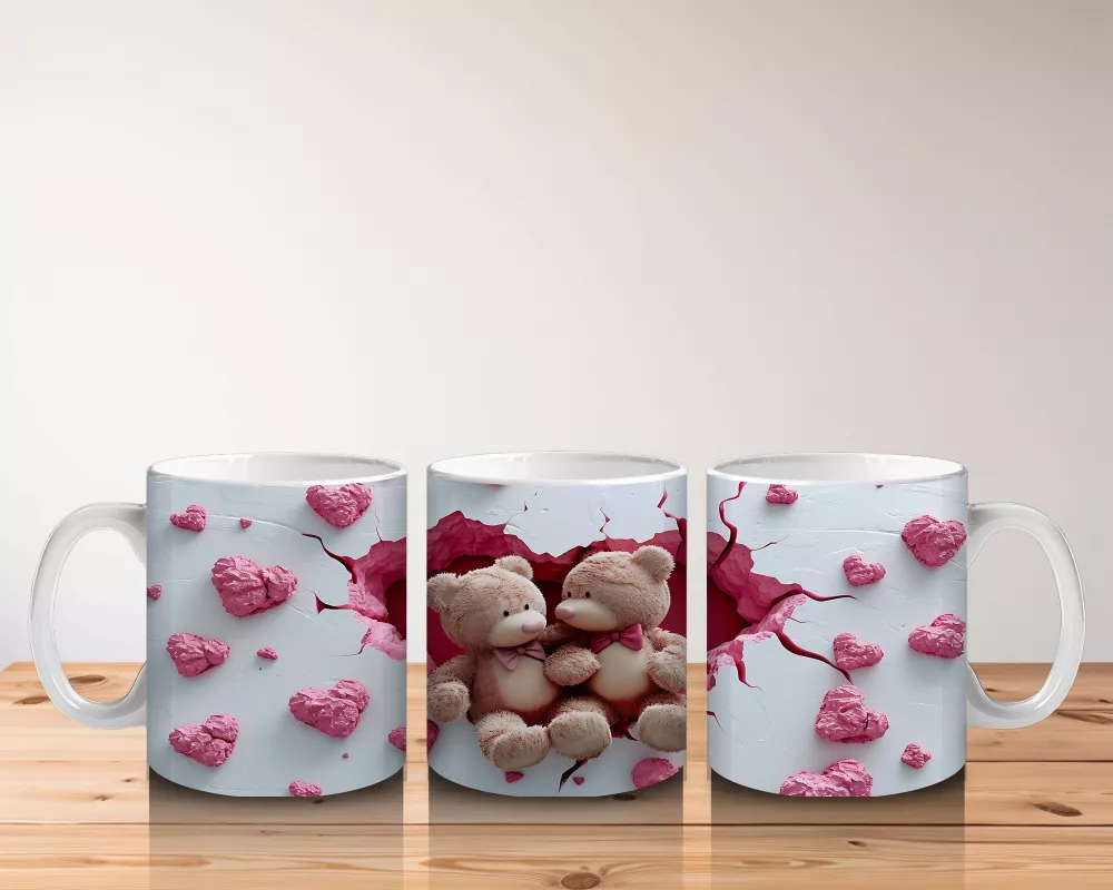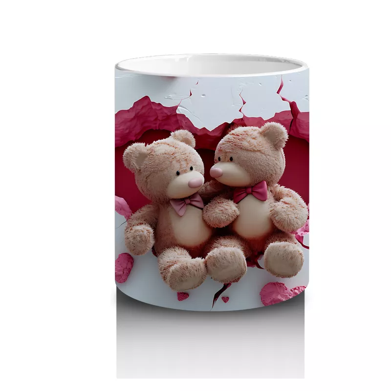 Pembe Kalplerle Süslenmiş Peluş Ayılar – Baskılı Kahve Kupası