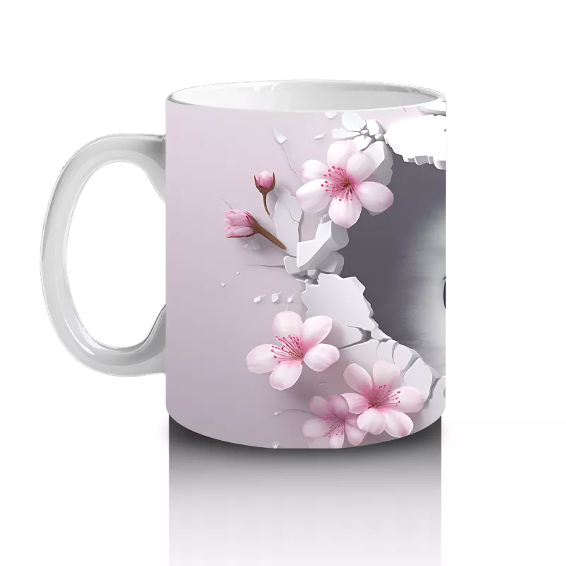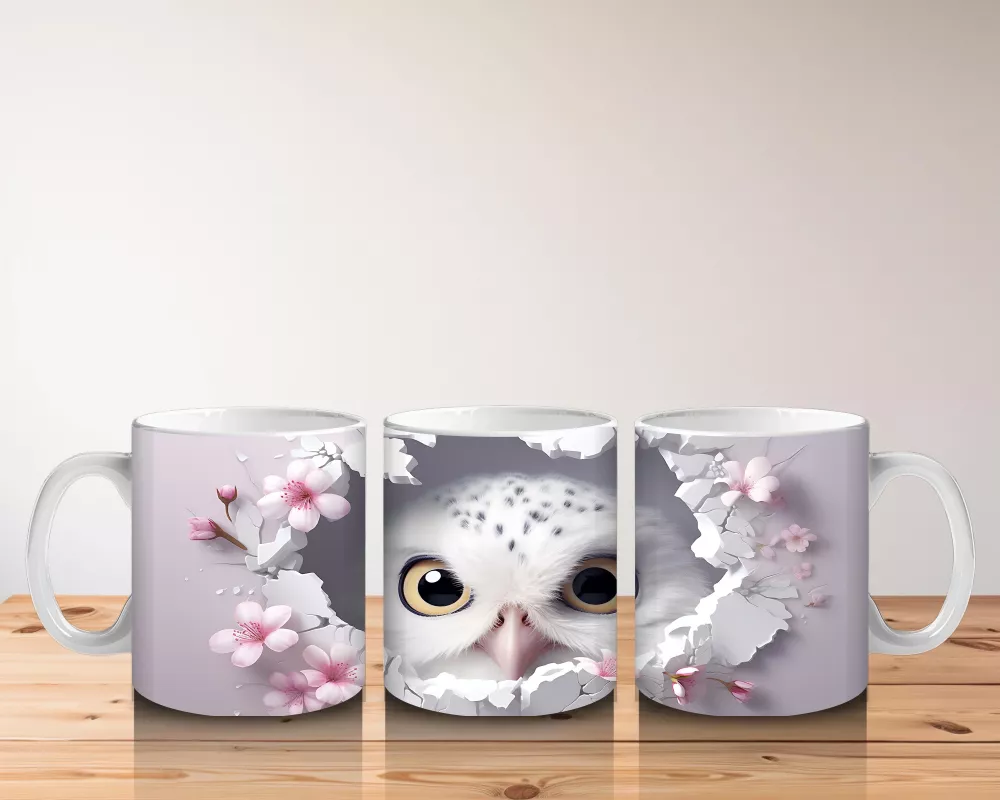 Pembe Çiçeklerle Süslenmiş Baykuş – Baskılı Kahve Kupası