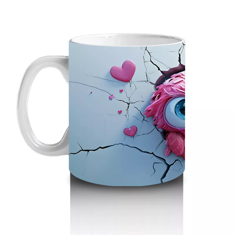 Pembe kalplerle bezenmiş baykuş figürleri, doğallığı ve tatlılığı bir araya getiriyor. İç ısıtan ve romantik detayları tercih edenler için şirin bir kupa tasarımı.