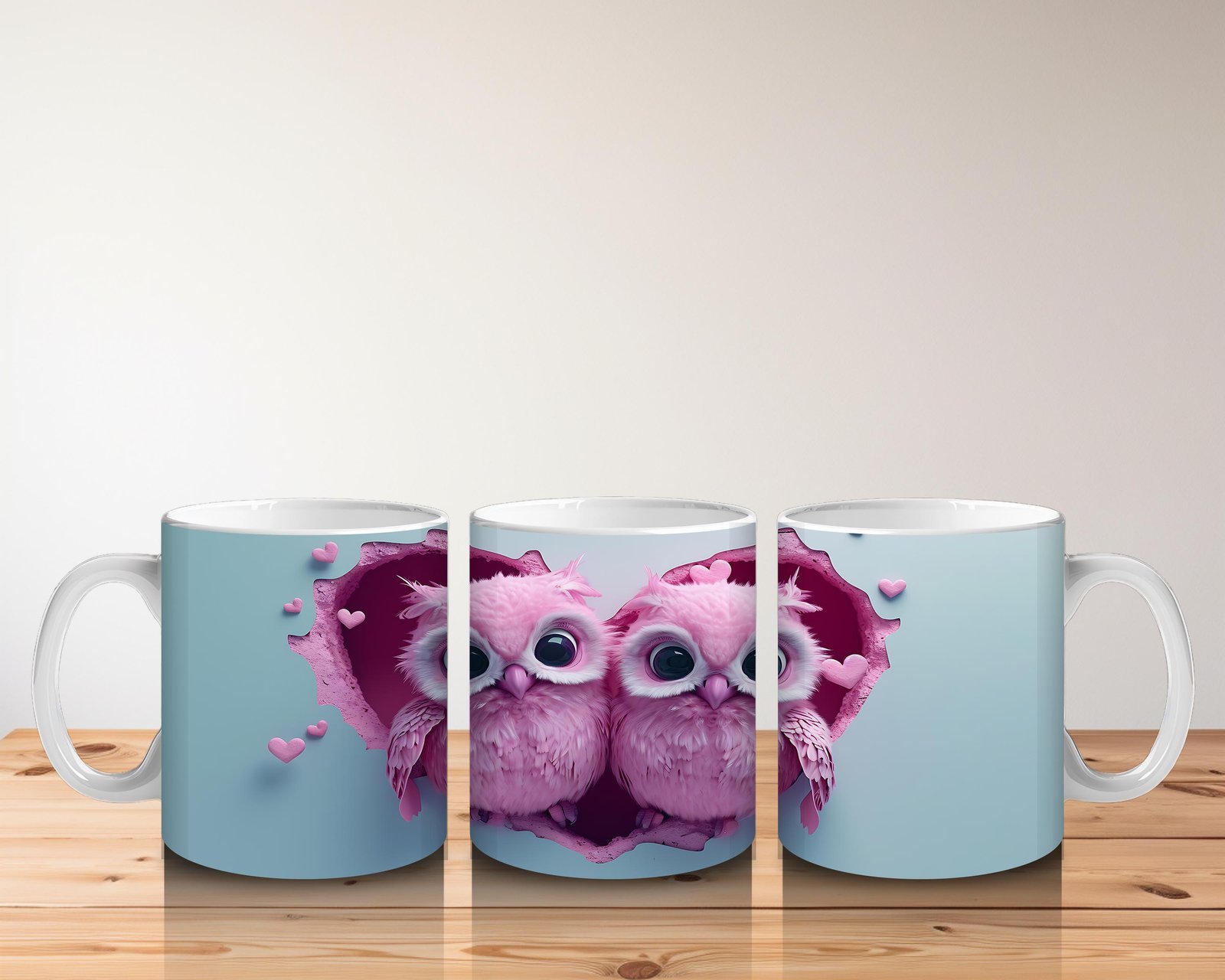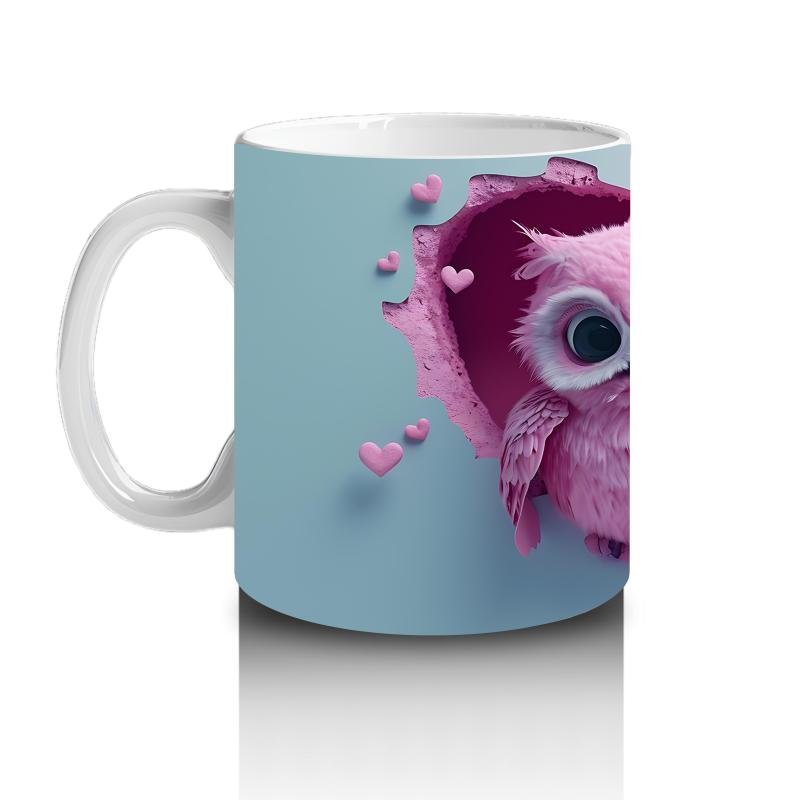 Çocuklara sütü sevdiren Kalp Çerçevesinden Bakan Pembemsi Baykuş Çifti Kupa Bardak tasarımlı kupa bardak. Neşeli, eğlenceli ve özel anlar için ideal hediye s…