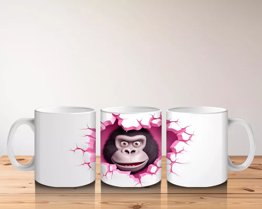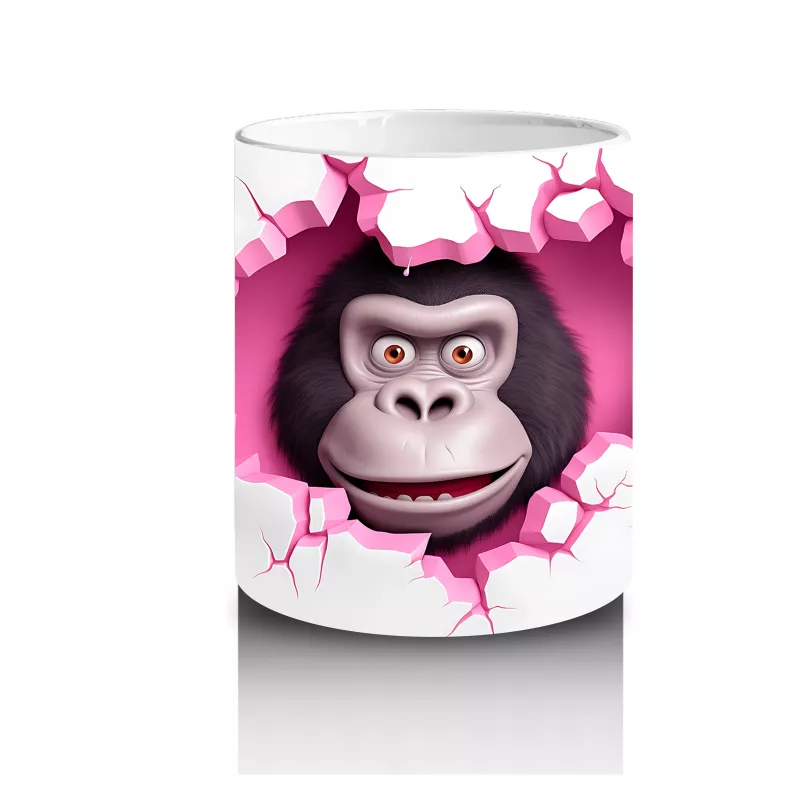 Pembe Kalpli Arka Planda Sevimli Goril – Baskılı Kahve Kupası