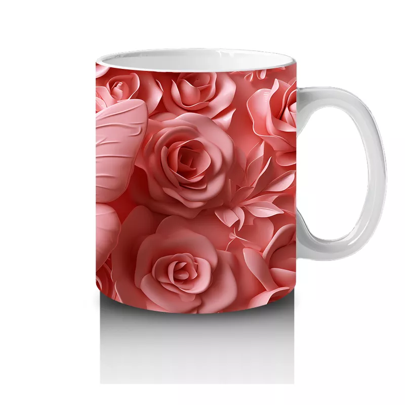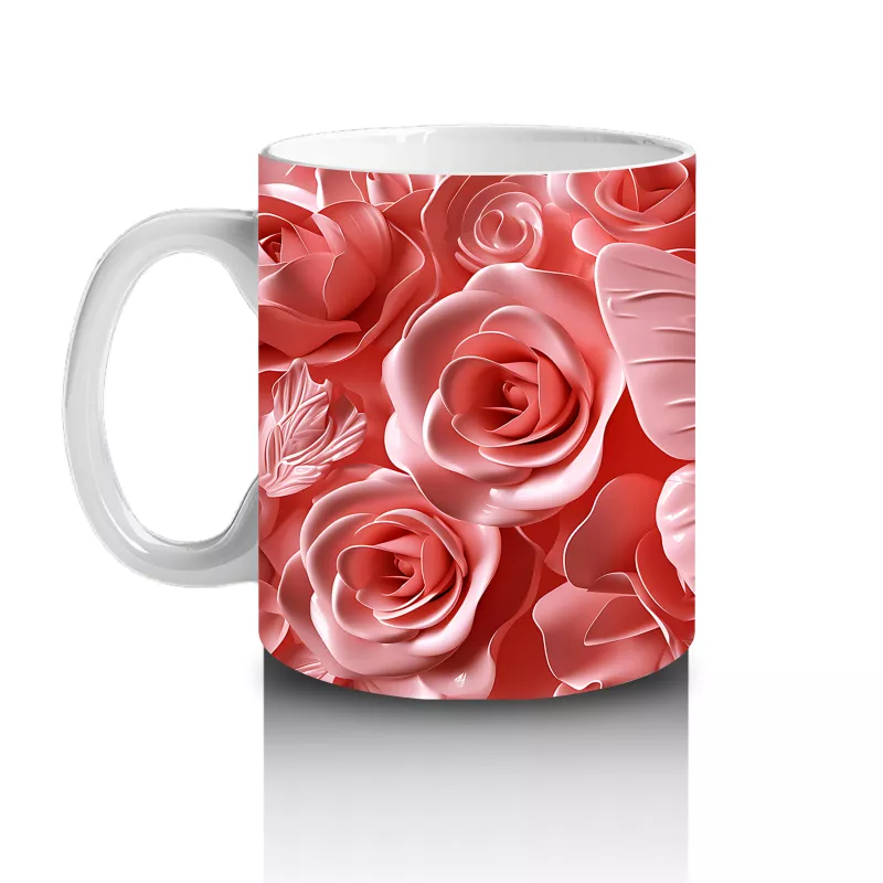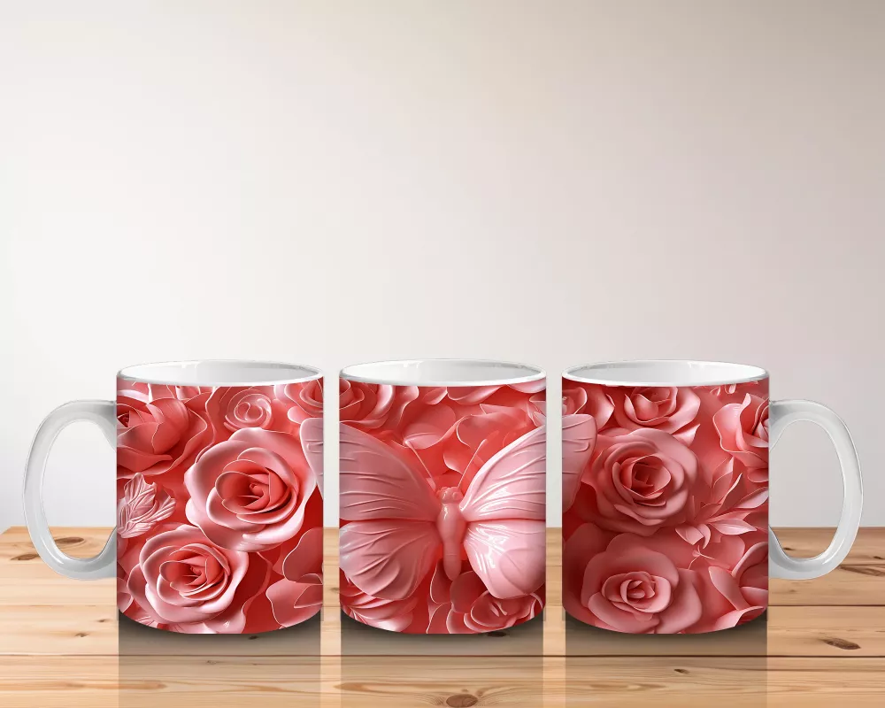 Gül Buketi Arasında Pembe Kelebek – Baskılı Kahve Kupası