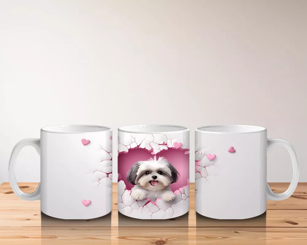 Pembe Kalplerle Süslenmiş Yavru Köpek – Baskılı Kahve Kupası
