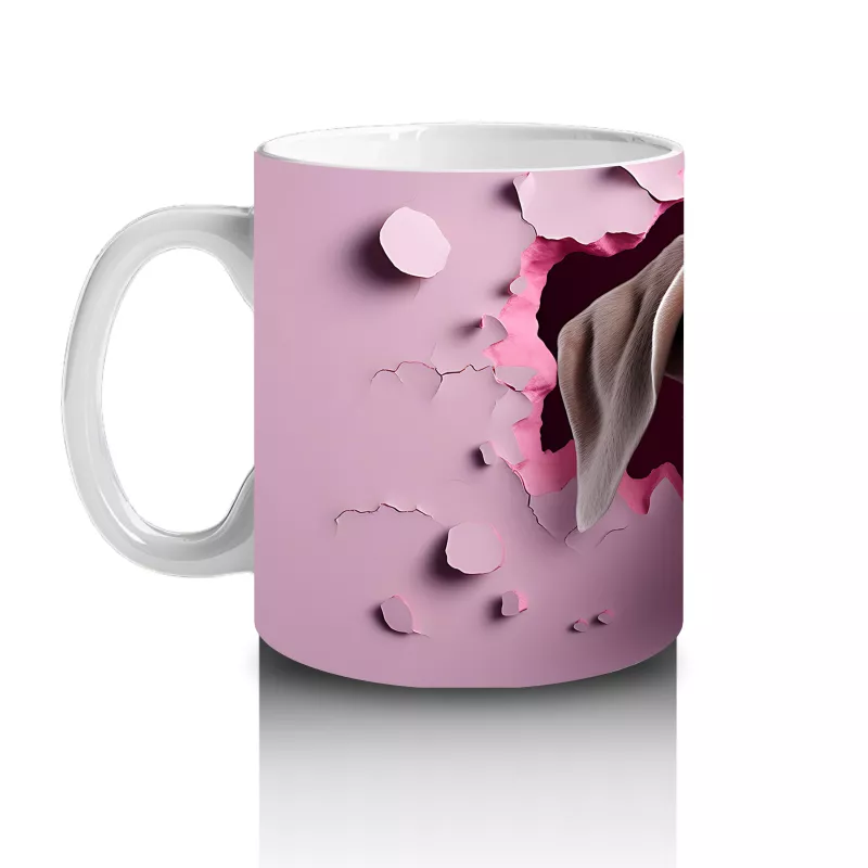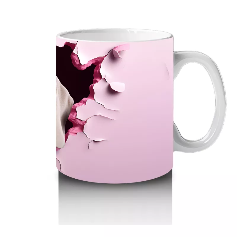 Pembe Kalpli Duvar Önünde Sevimli Köpek – Baskılı Kahve Kupası