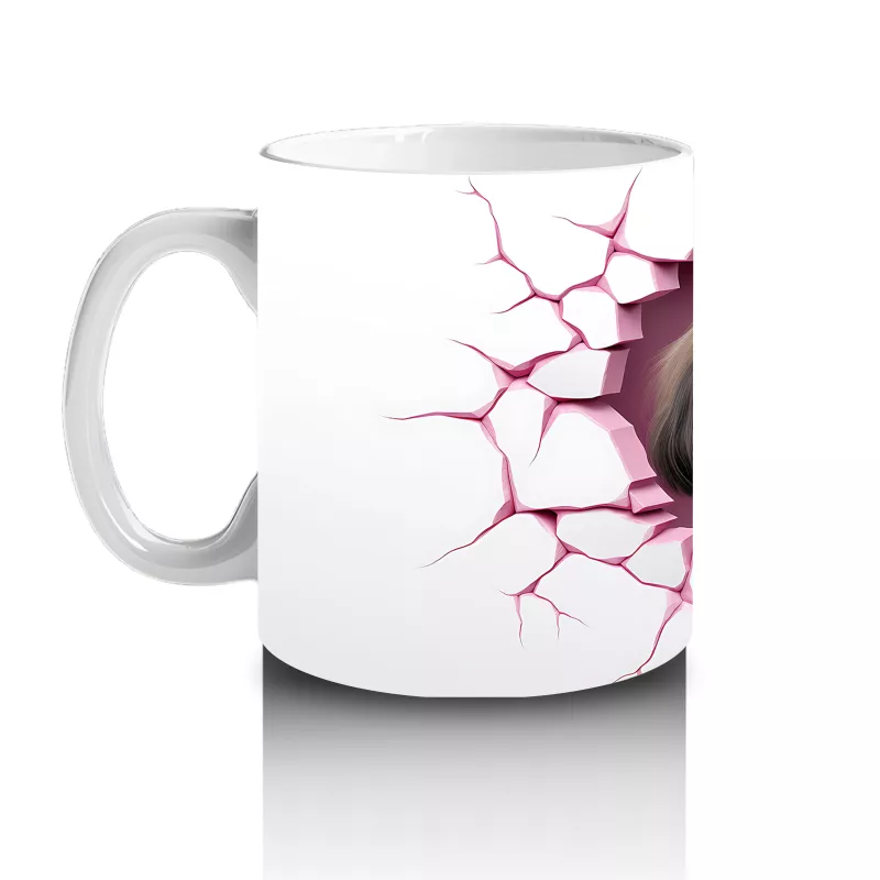 Pembe Yırtık Desen Üzerine Sevimli Köpek – Baskılı Kupa