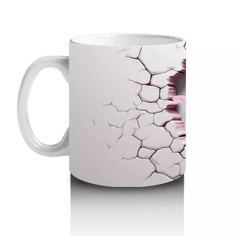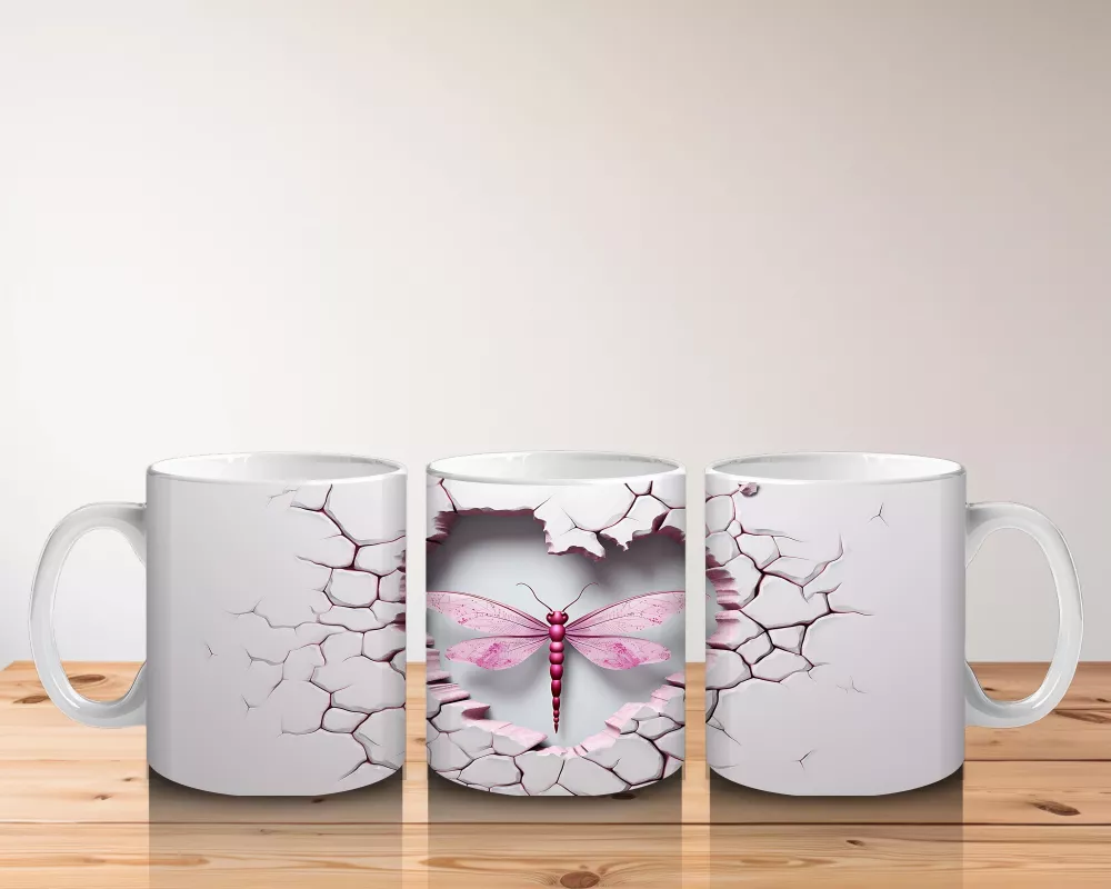 Çatlak Zemin Üzerinde Pembe Kanatlı Yusufçuk – Baskılı Kahve Kupası
