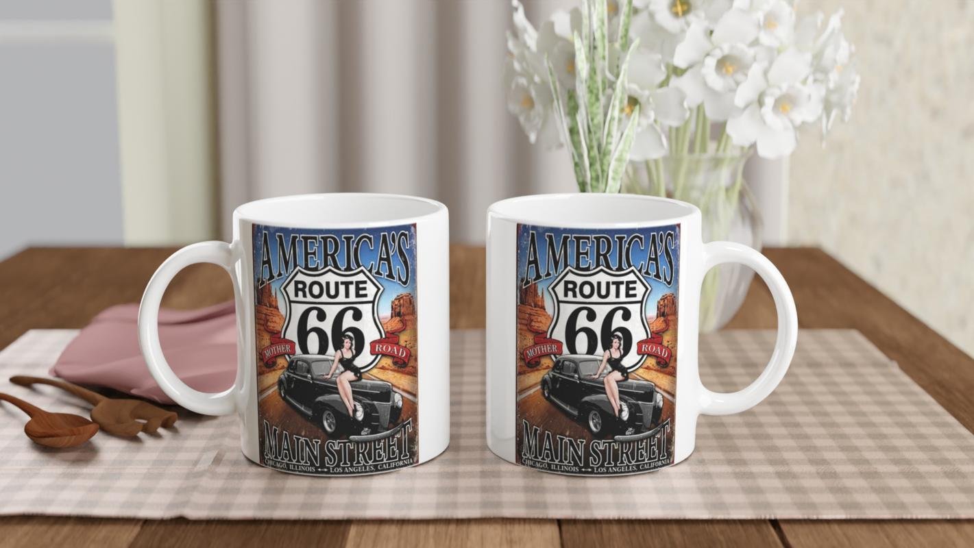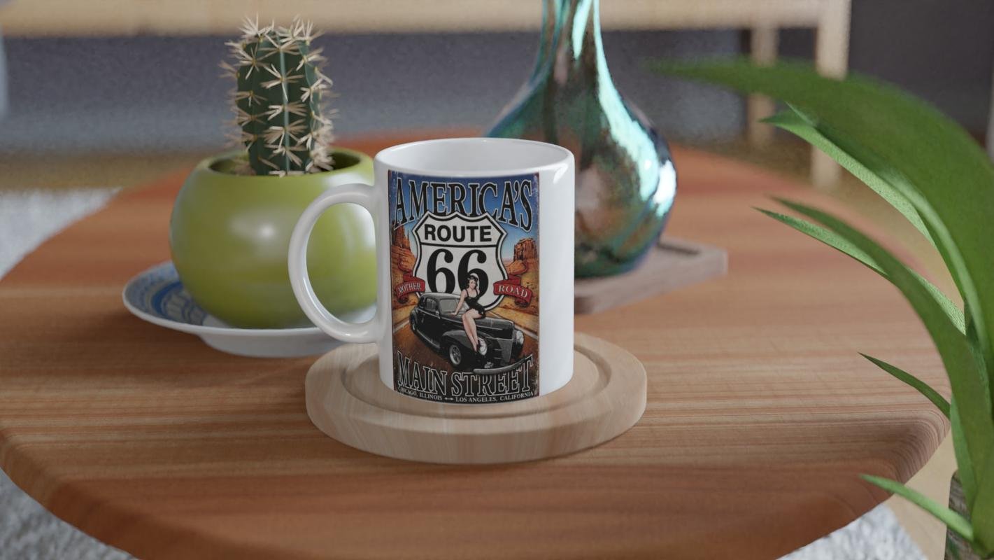 Chicago’dan Los Angeles’a uzanan Route 66'nın özgürlük ve yolculuk ruhunu yansıtan bu pin-up temalı kupa bardak, koleksiyonlara renk katıyor.