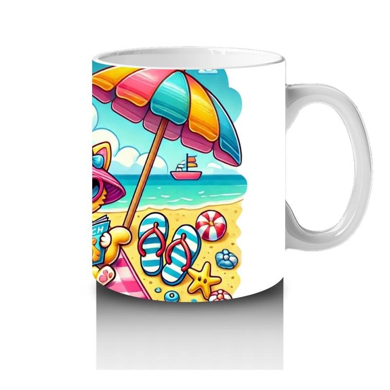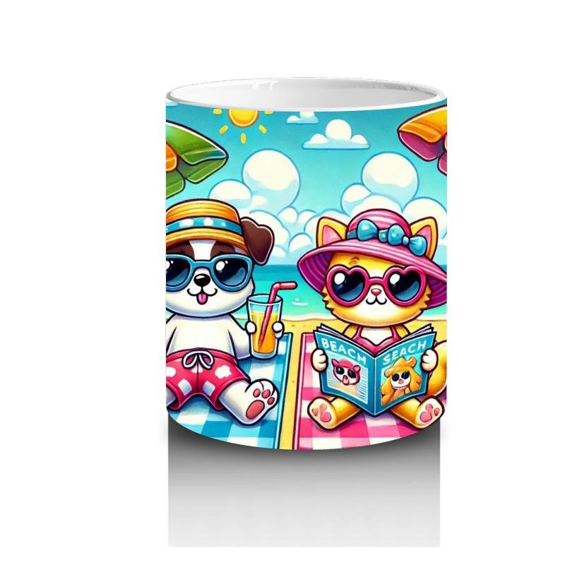 Çocuklara Sütü Sevdiren Plaj Keyfi Yapan Kedi ve Köpek Desenli Kupa Bardak