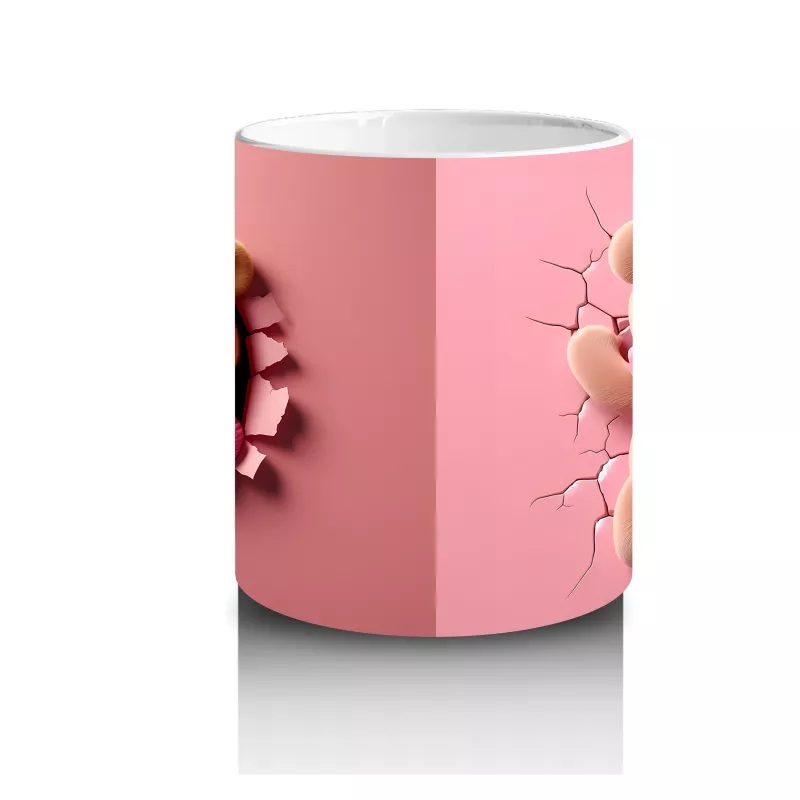 Pembe Arka Planda Ponpon Şapkalı Kız – Baskılı Kahve Kupası