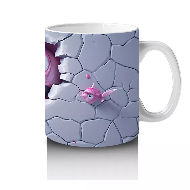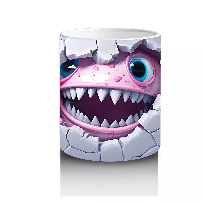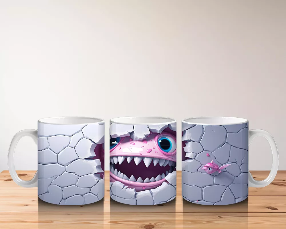 Mavi çatlaklar arasında pörtlek gözleriyle şaşkın bir köpekbalığı! Mizah dolu bu tasarım, kahve molalarına enerji katıyor.