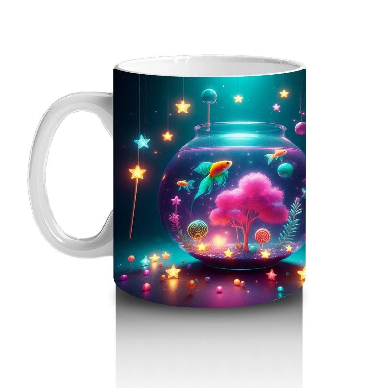 Çocuklara sütü sevdiren Işıltılı Renkli Balık Akvaryumu Desenli Kupa Bardak tasarımlı kupa bardak. Neşeli, eğlenceli ve özel anlar için ideal hediye seçeneği.