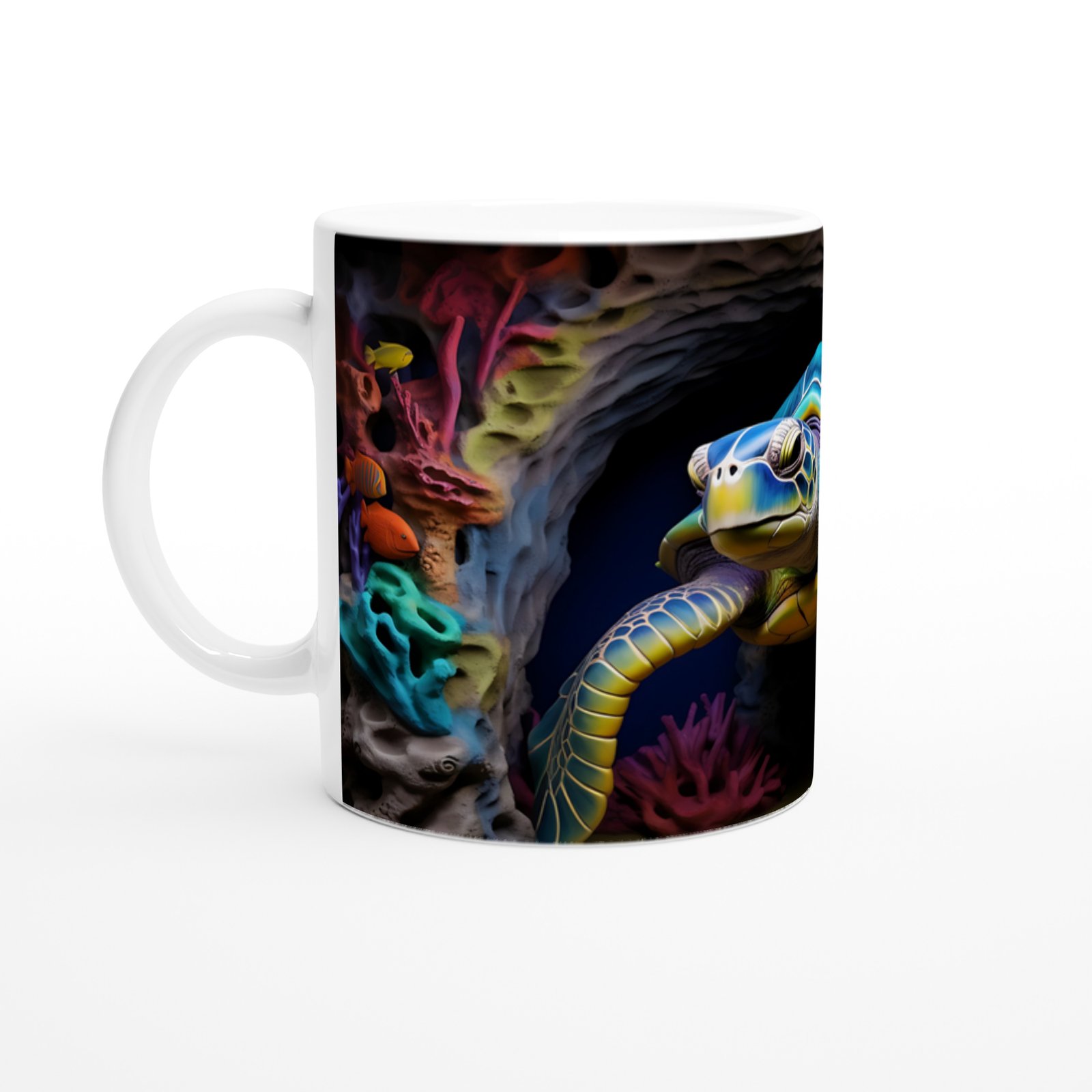 Derin denizlerin gizemli dünyasında süzülen bu kaplumbağalı kupa bardak, canlı renkleriyle pozitif bir enerji kaynağı olacak.