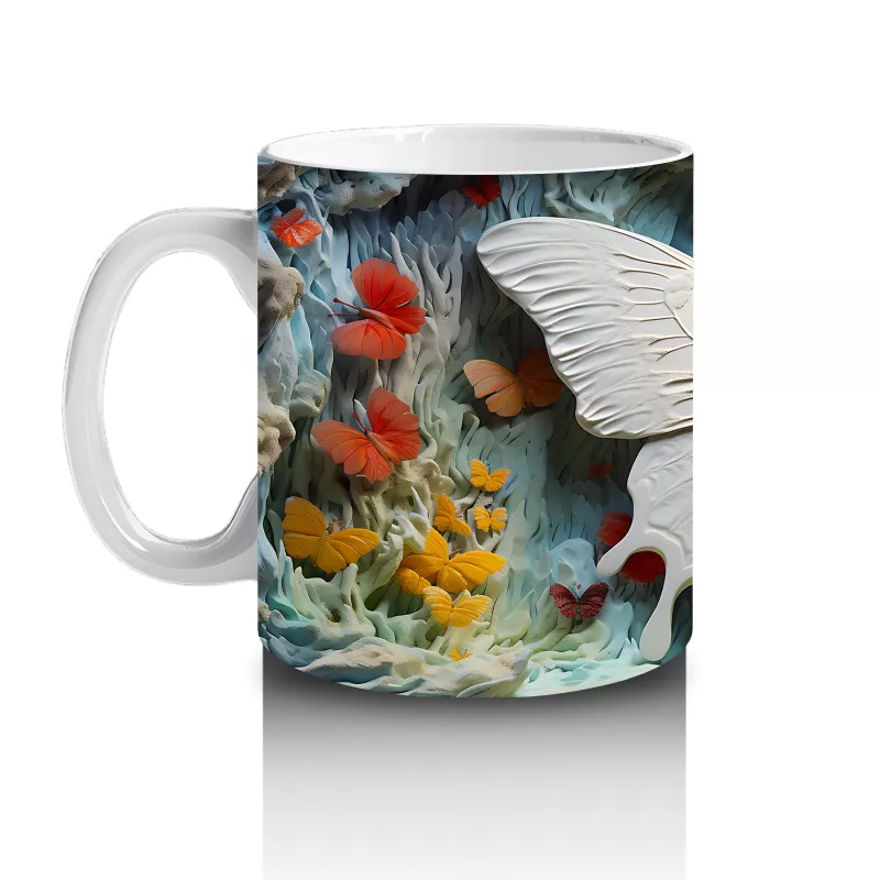 Turuncu Mavi Renkli Tünelde Kelebek – Baskılı Kupa