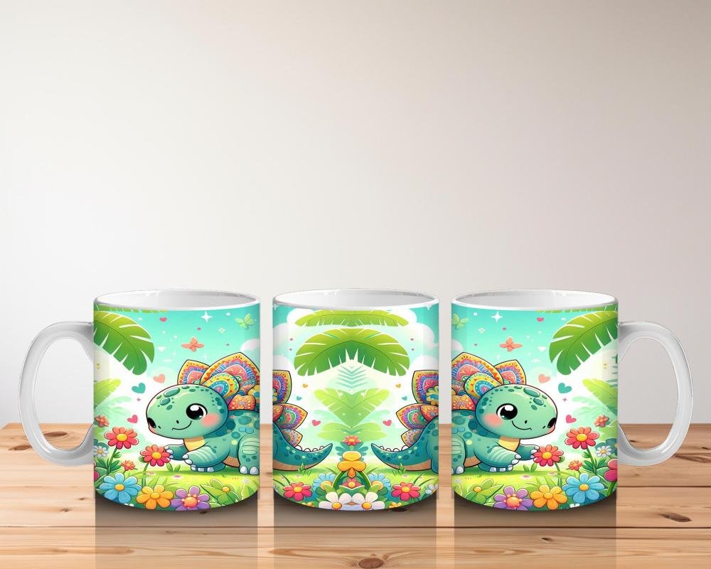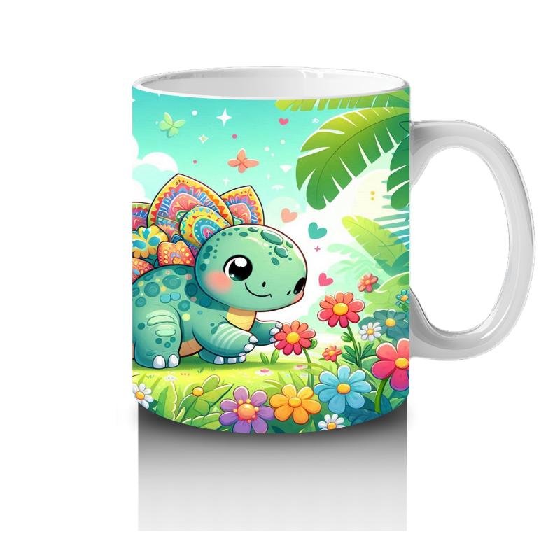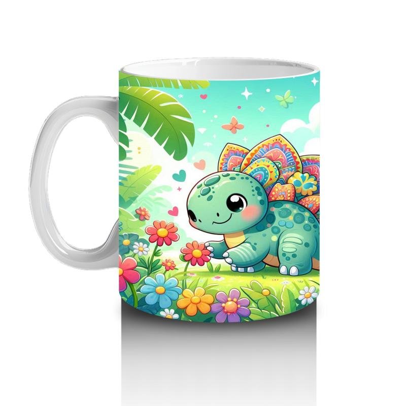 Çocuklara Sütü Sevdiren Renkli Stegozor Desenli Kupa Bardak