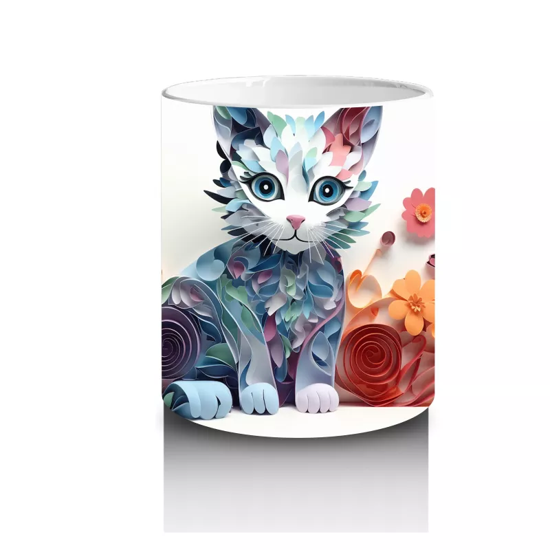 Canlı renklerle süslenmiş su damlalarının arasında beliren sevimli kedi figürü, bu kupaya enerjik ve sanatsal bir dokunuş katıyor. 🐱💧Renkli ve neşeli bir hediye arayanlar için ideal.