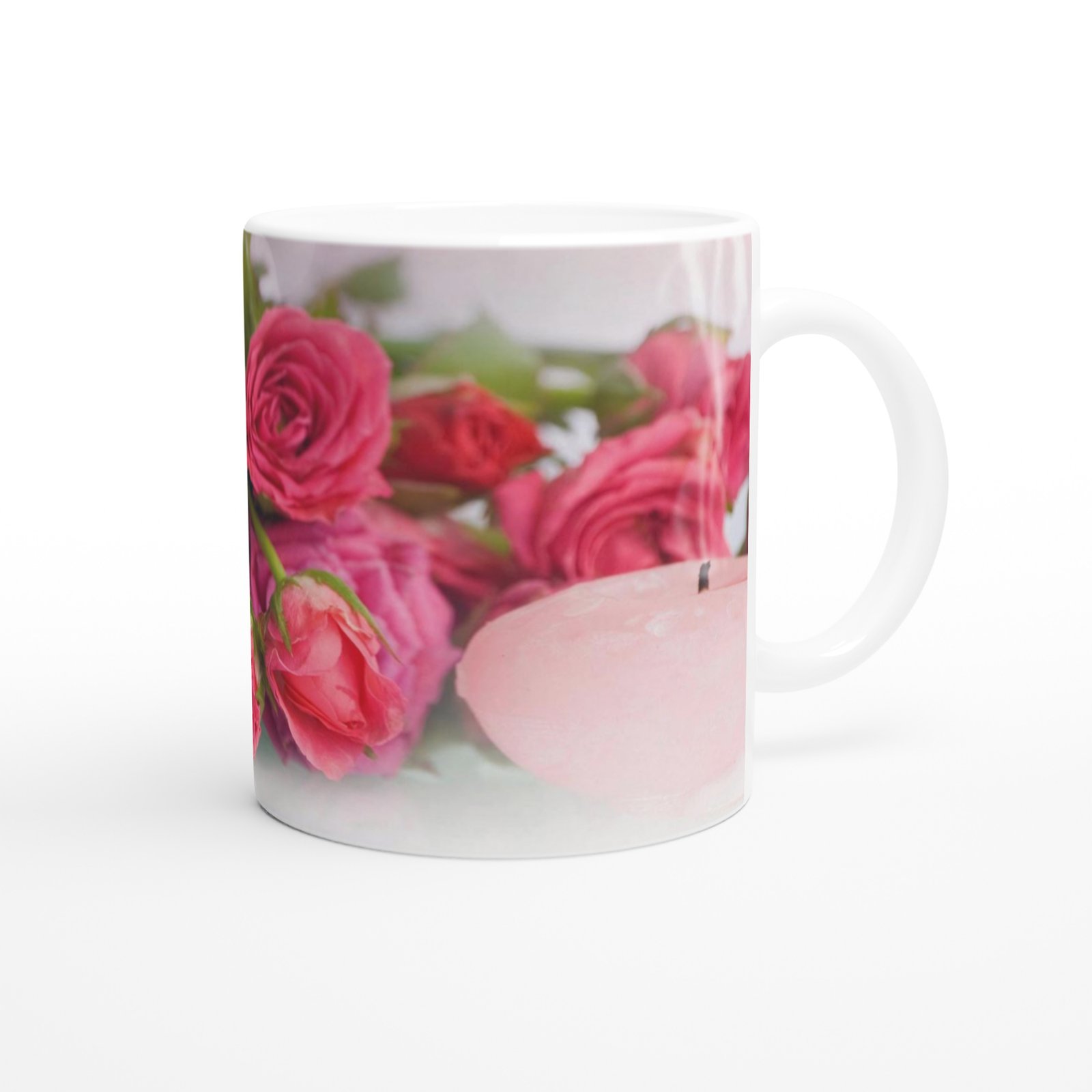 Gül ve Mum Esintili Romantik Kupa, zarif dokunuşlarla hazırlanmış baskısı sayesinde hem sevgi dolu hediyeler hem de özel günler için ideal bir seçimdir.