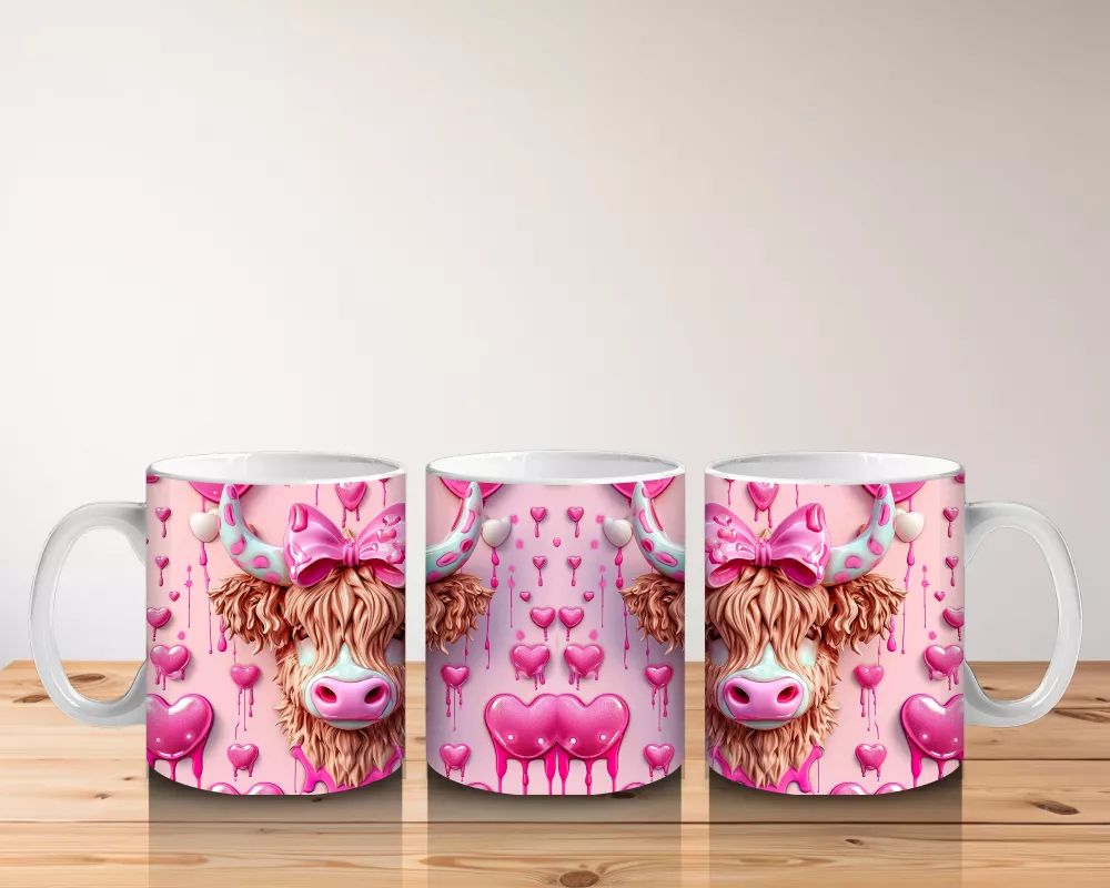 Pembe Kurdeleli Romantik İnek Deseni – Baskılı Kahve Kupası