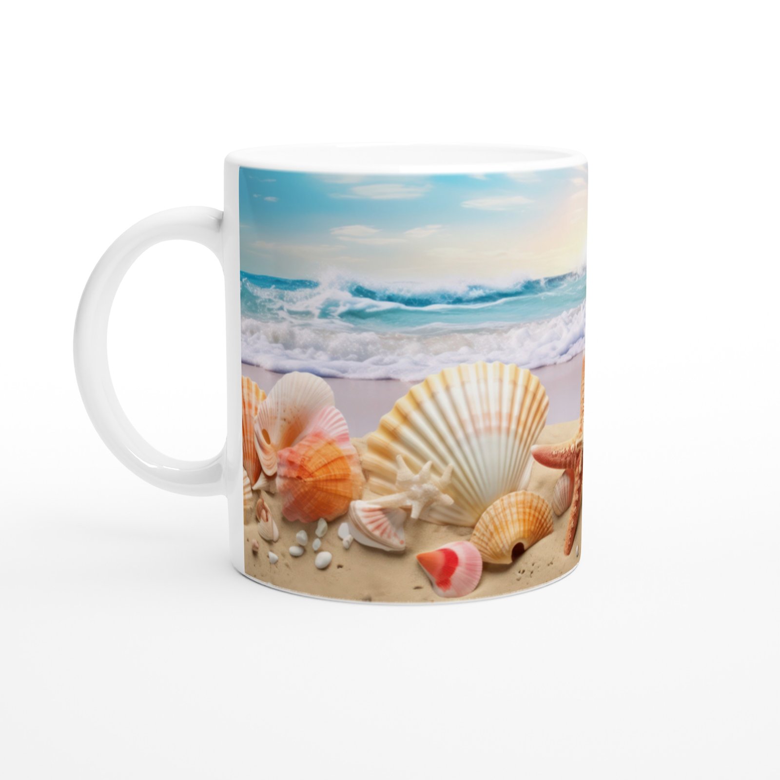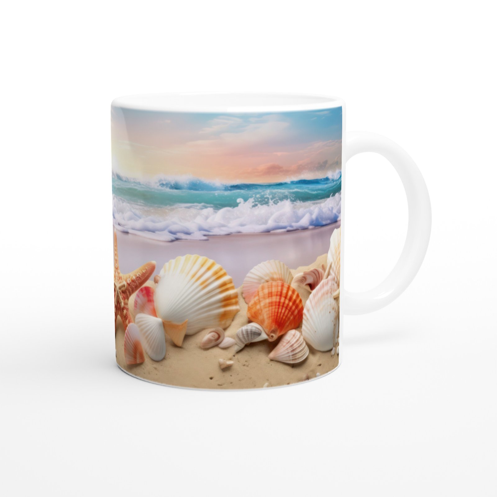 Doğal renk geçişleri ve deniz kokusunu çağrıştıran tasarımıyla bu özel kupa bardak, sahil romantizmini yansıtır.