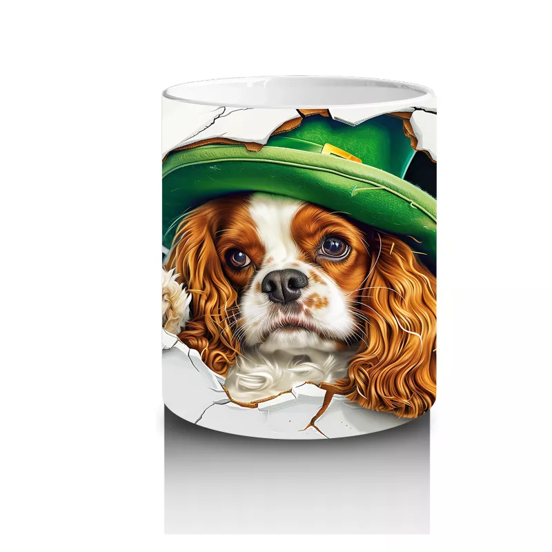 Şans Sembolleriyle Süslenmiş Leprechaun Cocker Köpek – Baskılı Kahve Kupası