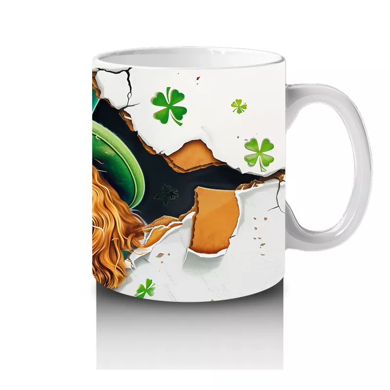Şans Sembolleriyle Süslenmiş Leprechaun Cocker Köpek – Baskılı kahve kupası