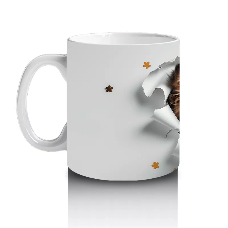 Çatlak duvarın arasından şans şapkasıyla bakan köpek, enerjik ve pozitif bir hava yaratıyor. Mizahi ve samimi detayları sevenlere özel eğlenceli bir kupa.