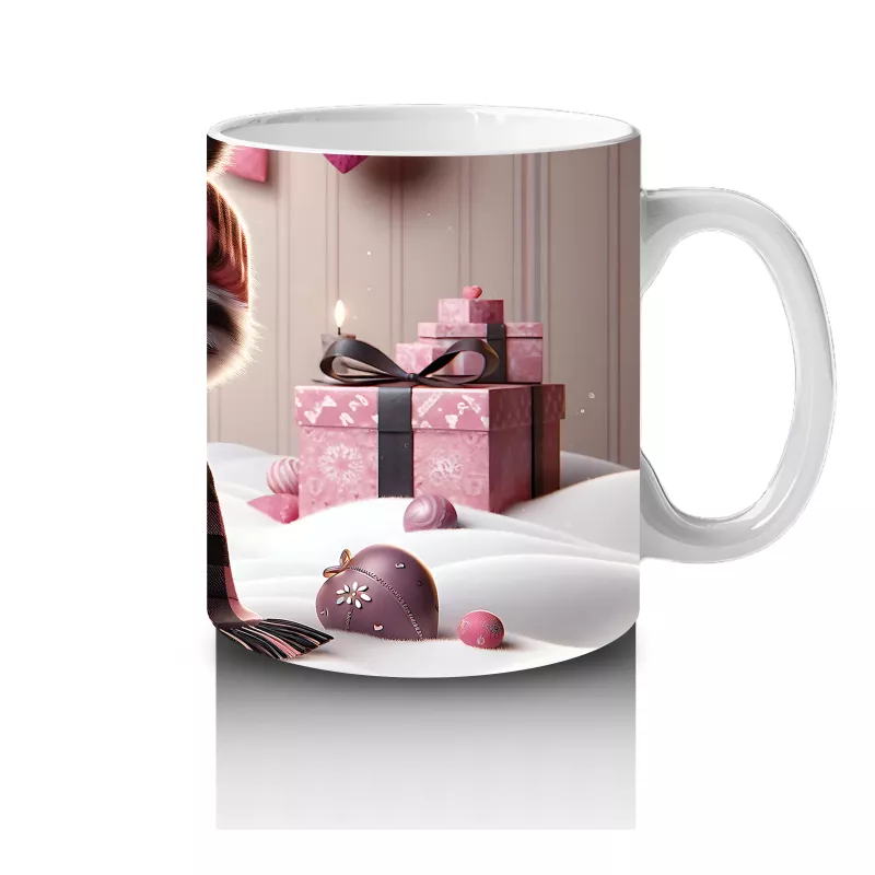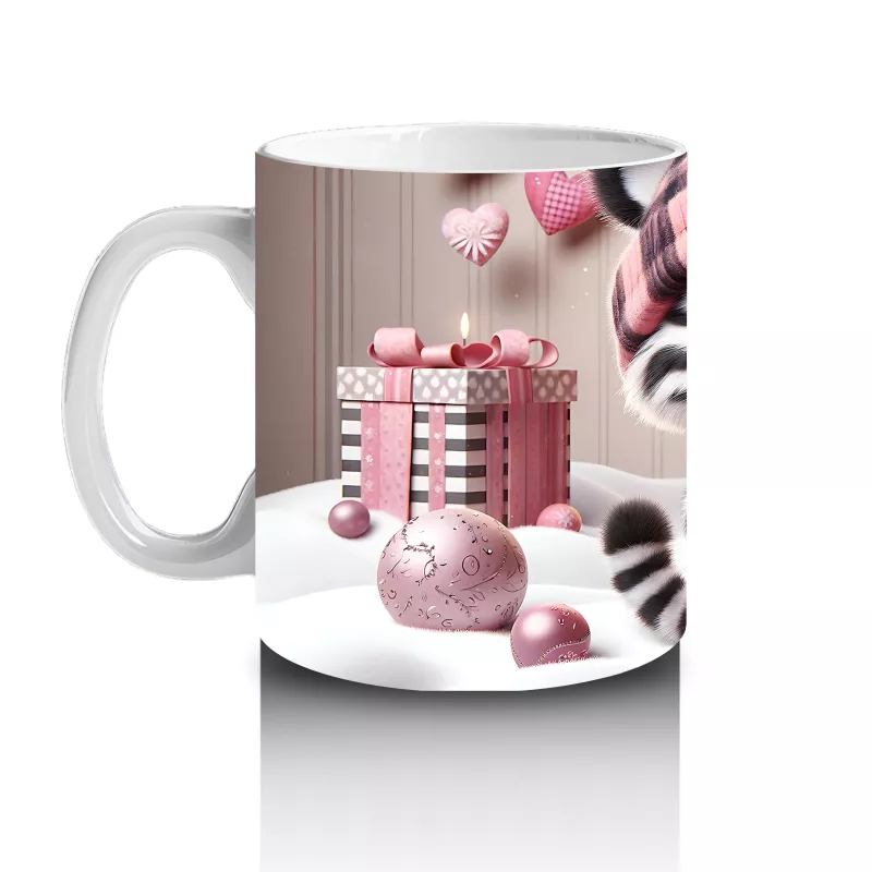 Hediye Kutuları Arasında Şapkalı Sevimli Kedi – Baskılı Kahve Kupası